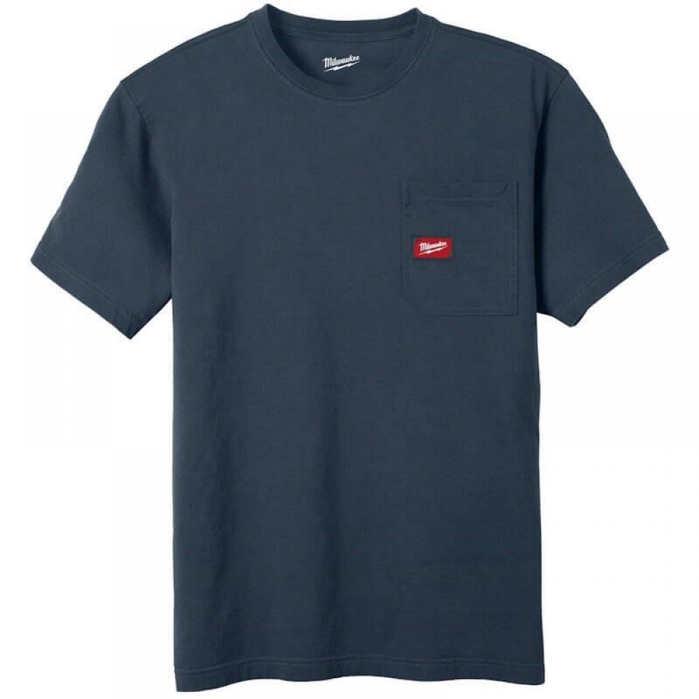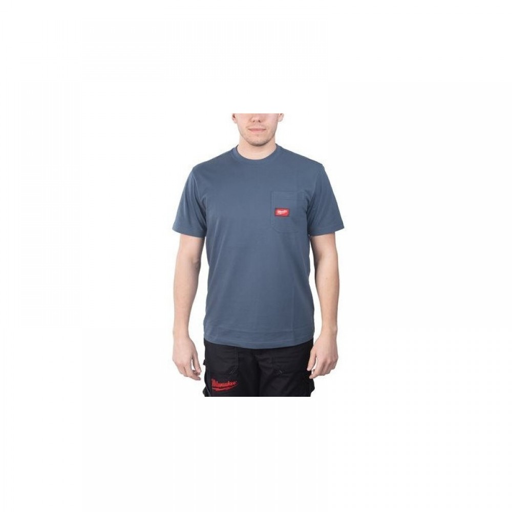 Футболка MILWAUKEE WTSSBLU-XL, з карманом та коротким рукавом, синя, (розмір XL)