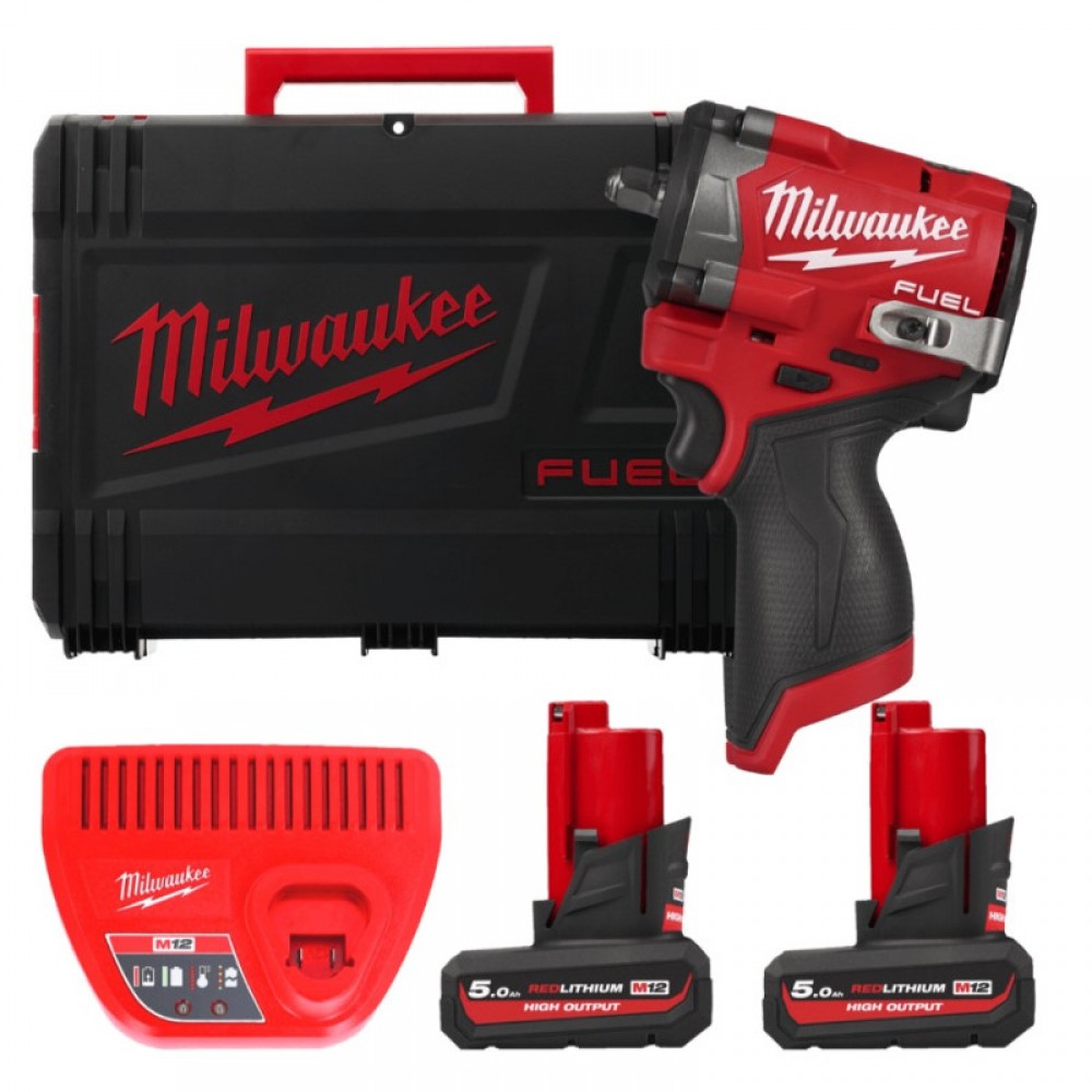 Гайковерт акумуляторний 3/8'' MILWAUKEE з кільцем M12 FCIWF38G3-502X, 745Нм (зарядний пристрій, 2 акум. Х 5Аг, HDкейс)