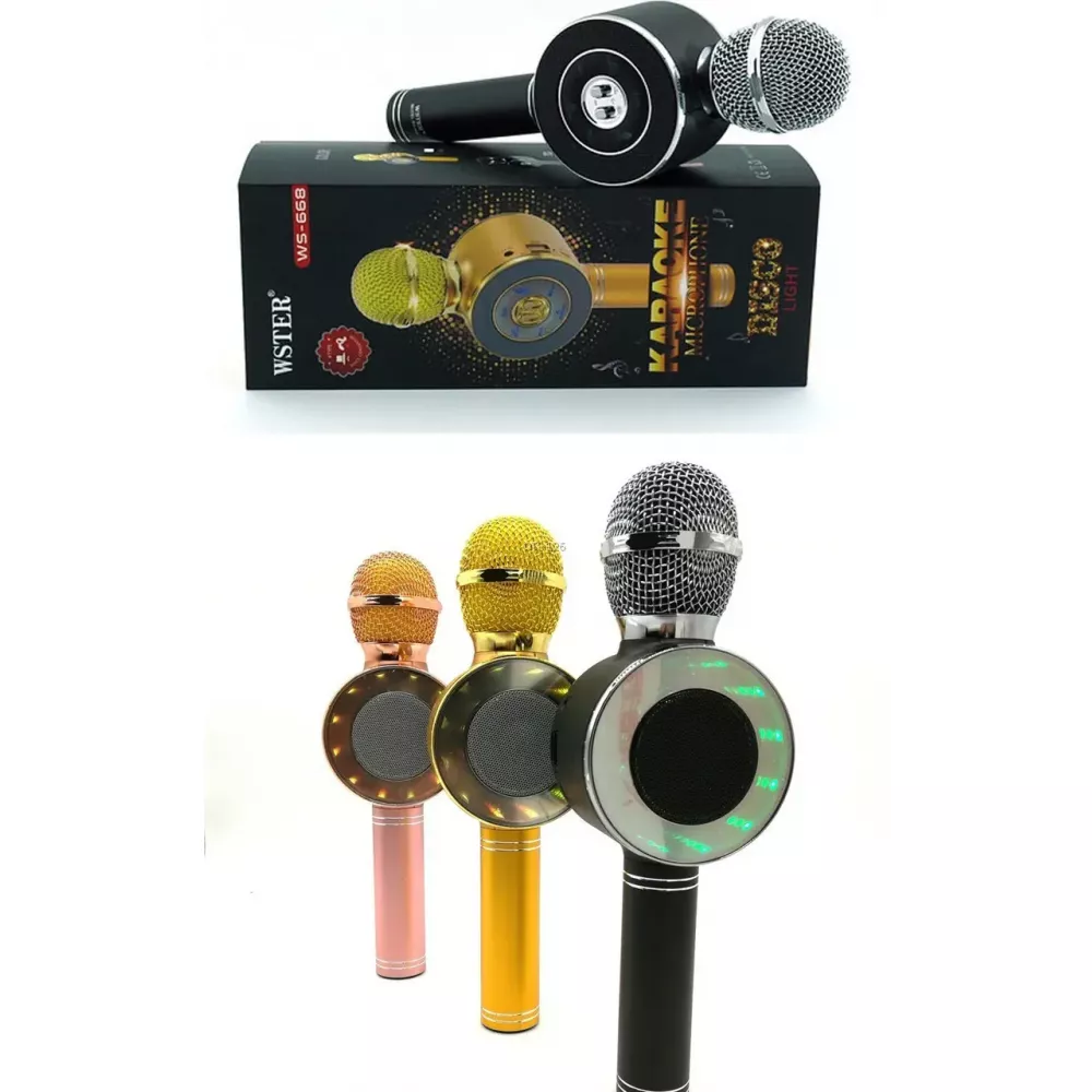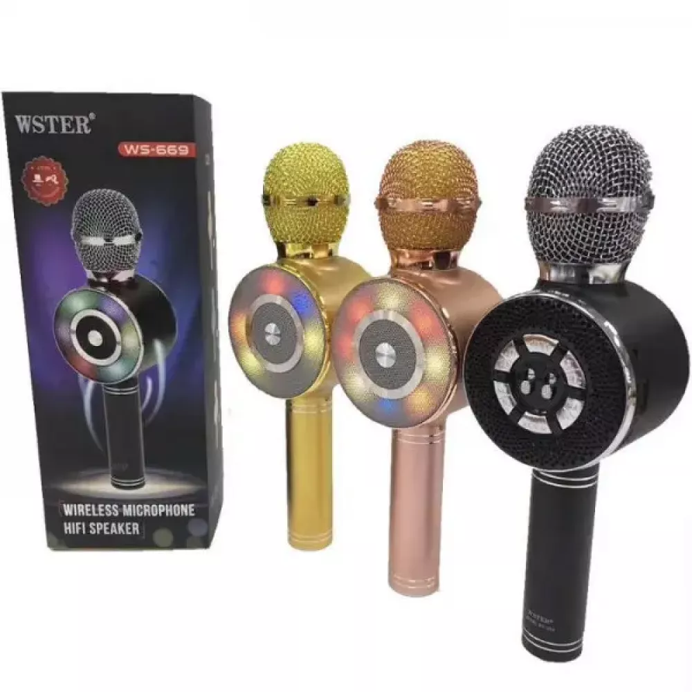 Оригінальний бездротовий караоке мікрофон з вбудованим динаміком Wster WS-669- це найновіша модель мікрофона від відомого бренду якісних портативних караоке Wster, в якому були покращені звукові та конструктивні характеристики, а також додані додаткові функції.