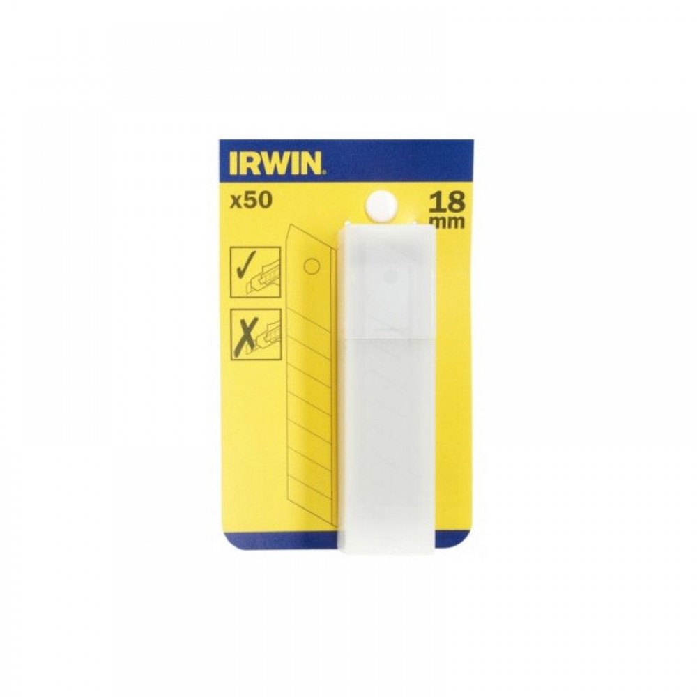 Карбонові леза Irwin 18 мм 50 шт (10504563). Лезо IRWIN використовується для ножів IRWIN . Це запасні леза з вісьма сегментами, що відламуються, шириною 18 мм. Необхідні до виконання робіт загального призначення. Виготовлені з інструментальної сталі, відрізняються міцністю та зносостійкістю. Леза з вуглецевої сталі виконують точний різ до наміченої точки і мають нову гостру ріжучу кромку.