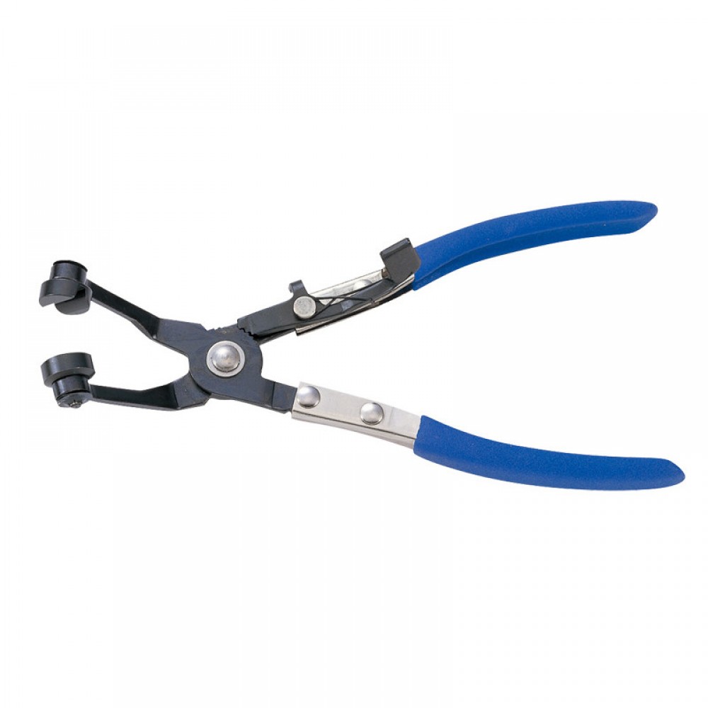Кліщі для хомутів Кліщі для встановлення хомутів KING TONY (9AA21) особливості: Використовуються для зняття та встановлення пружинного затискача Поворотна 45° увігнута щелепа з великим доступом у замкнутих просторах Розкриття 53 мм Підходить для VW, Audi, Opel, Honda, Ford
