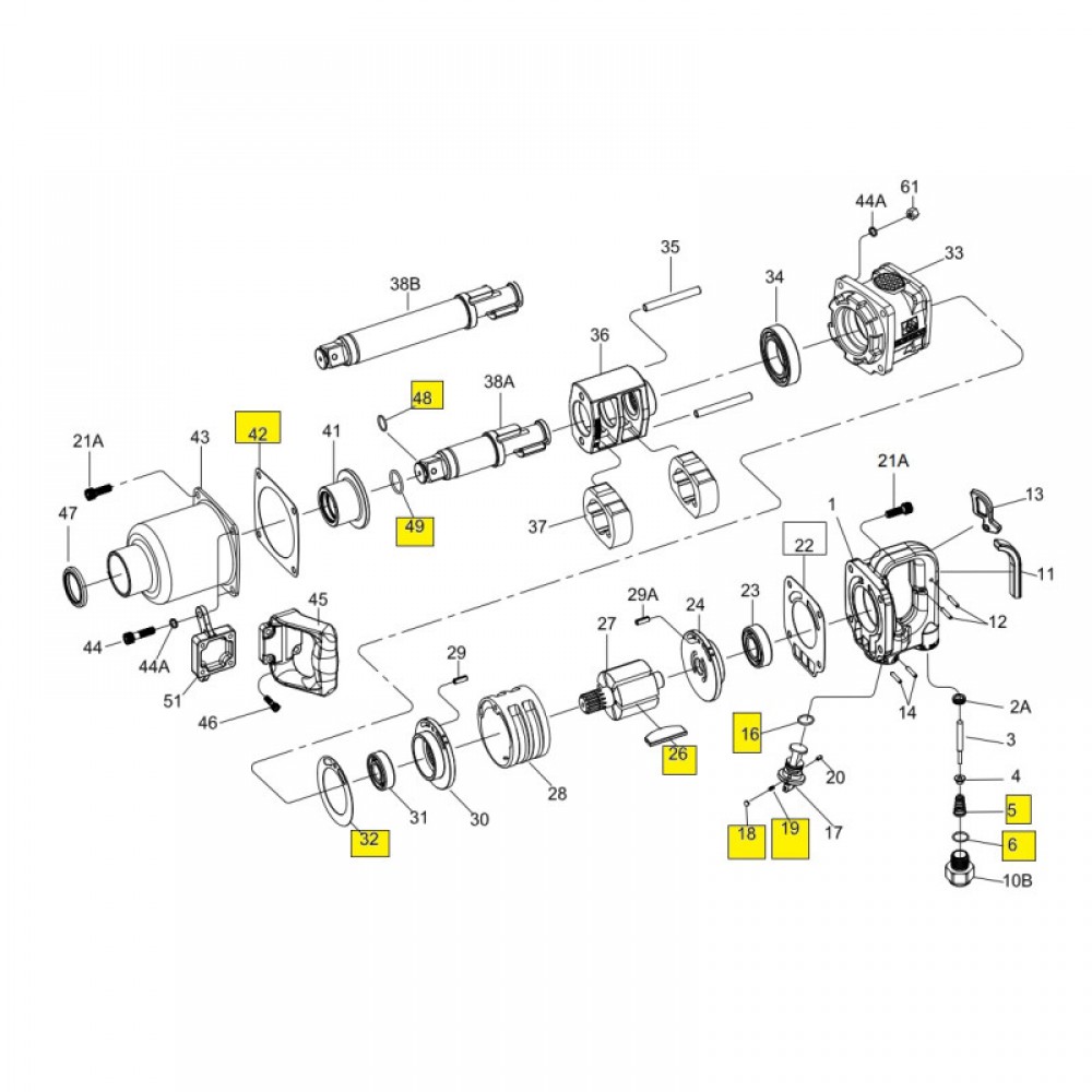 Ремкомплект KING TONY 33832-CTK для гайковерта 33832-180, комплект (5,6,16,18,19,22,26 (6 шт),32,42,48,49,)