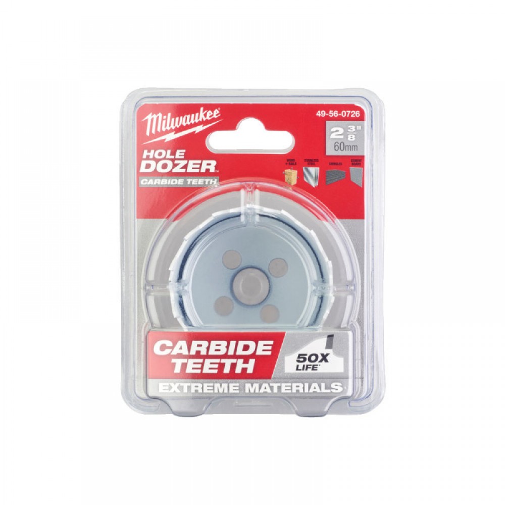 Коронки Milwaukee HOLE DOZER CARBIDE мають до 10 разів більше ресурсу, ніж звичайні коронки Milwaukee HOLE DOZER. Ідеальні для різання складних та твердих матеріалів, таких як, нержавіюча та кислотостійка сталь, кольорові метали, чавун, алюміній, дерево, МДФ, гіпсокартон, сендвіч матеріали та ПВХ.