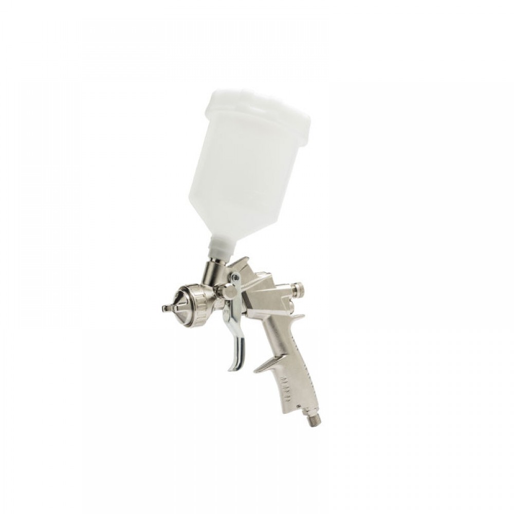 Тип аерографа - HVLP . При невеликому тиску краскопульт здатний розпорошувати великі обсяги оздоблювальних матеріалів. Підходить для всіх видів фарб та лаків. Має кілька налаштувань для керування факелом: