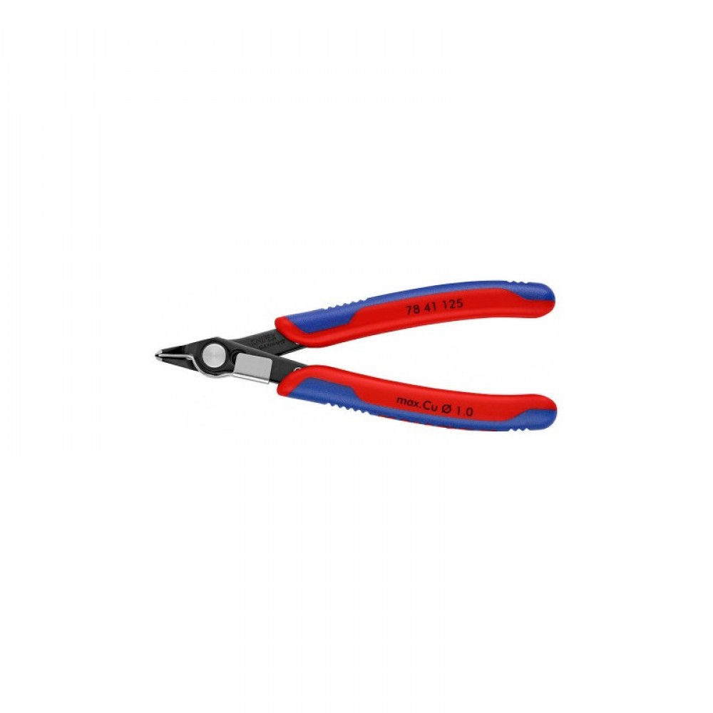 Шматочки Electronic Super Knips® KNIPEX 78 41 125 Короткі характеристики Кліщі воронені М'який дріт 0,2 - 1,0 Ø mm Ручки двокомпонентні Довжина загальна 125 mm Вага нетто 57 g Форма 4