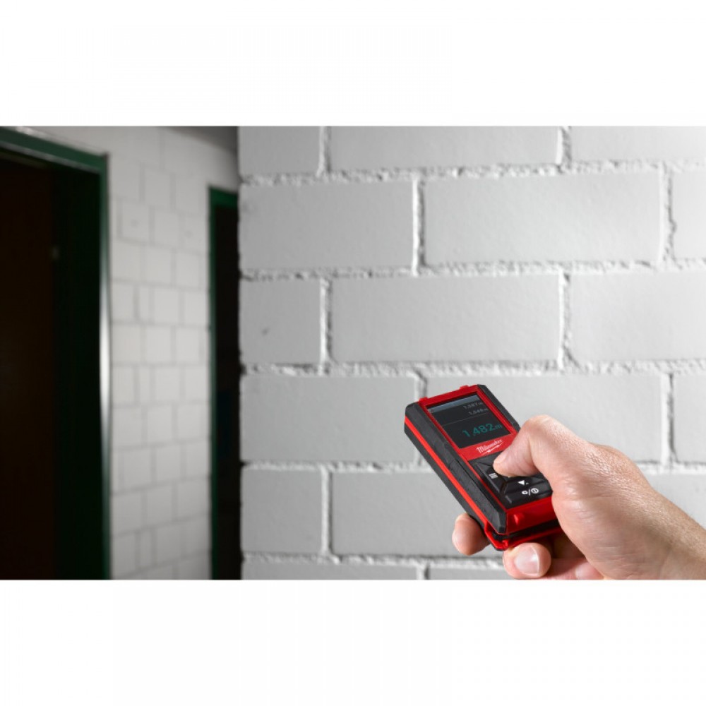 LCD екран 31,5 х40 мм; діапазон вимірів 0,15-45м; точність м/мм ±1,5; Клас лазера 2; габарити 105х48х24; IP 54; батарейки АААх2шт; вага 0,11 кг; картон