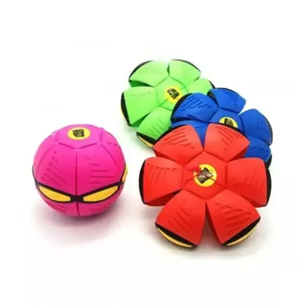 Перетворюється з плоского літаючого диска на круглий м'яч. Натисніть на м'яч, і він знову трансформується в диск, який легко поміщається у сумку чи рюкзак.