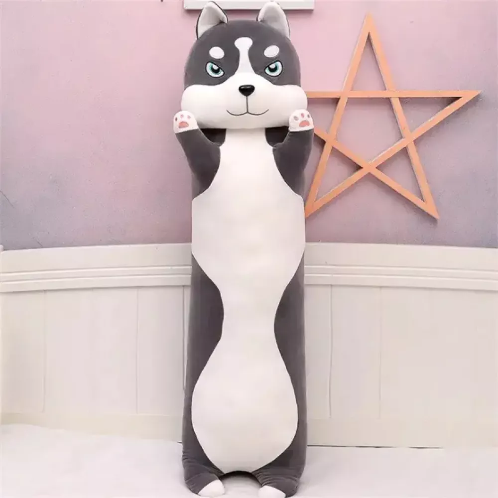 М'яка іграшка подушка довгий Хаскі антистрес подушка сірий