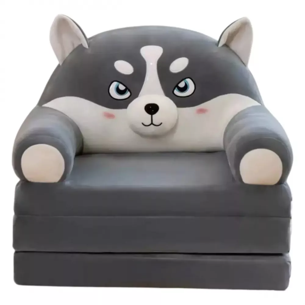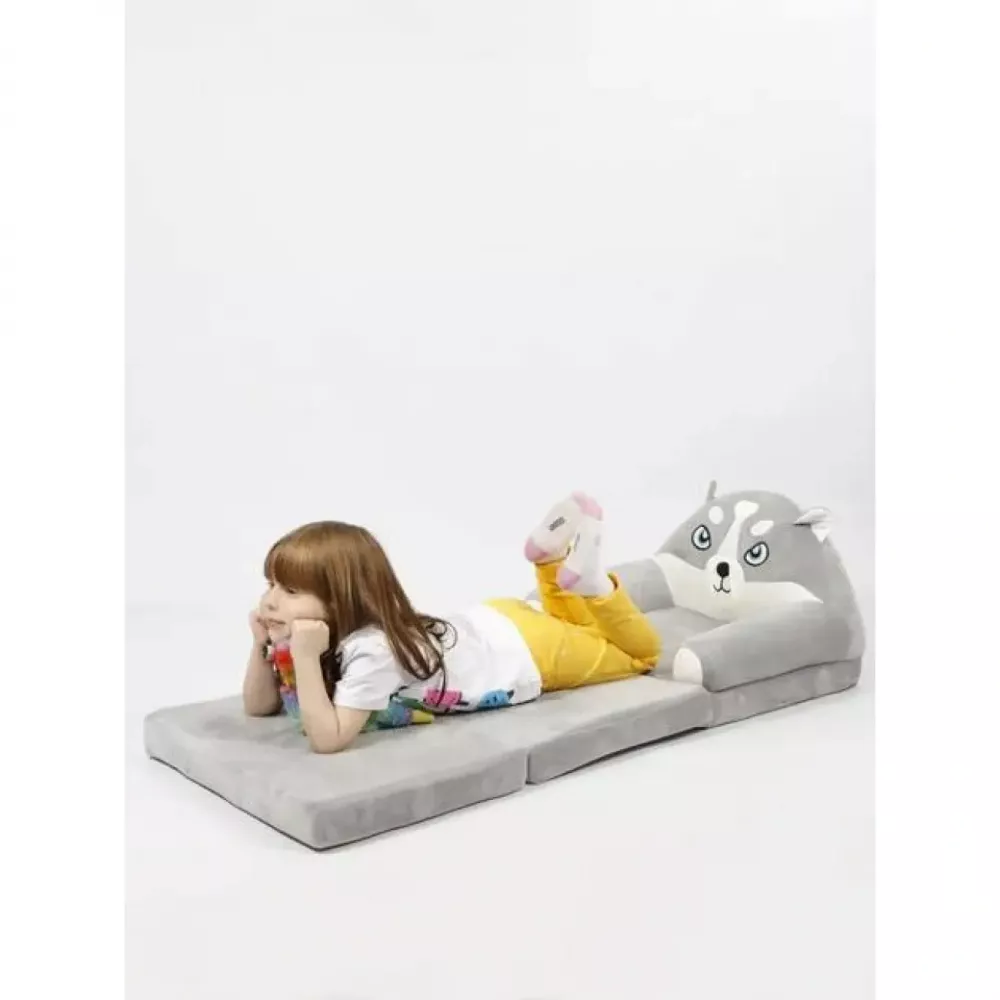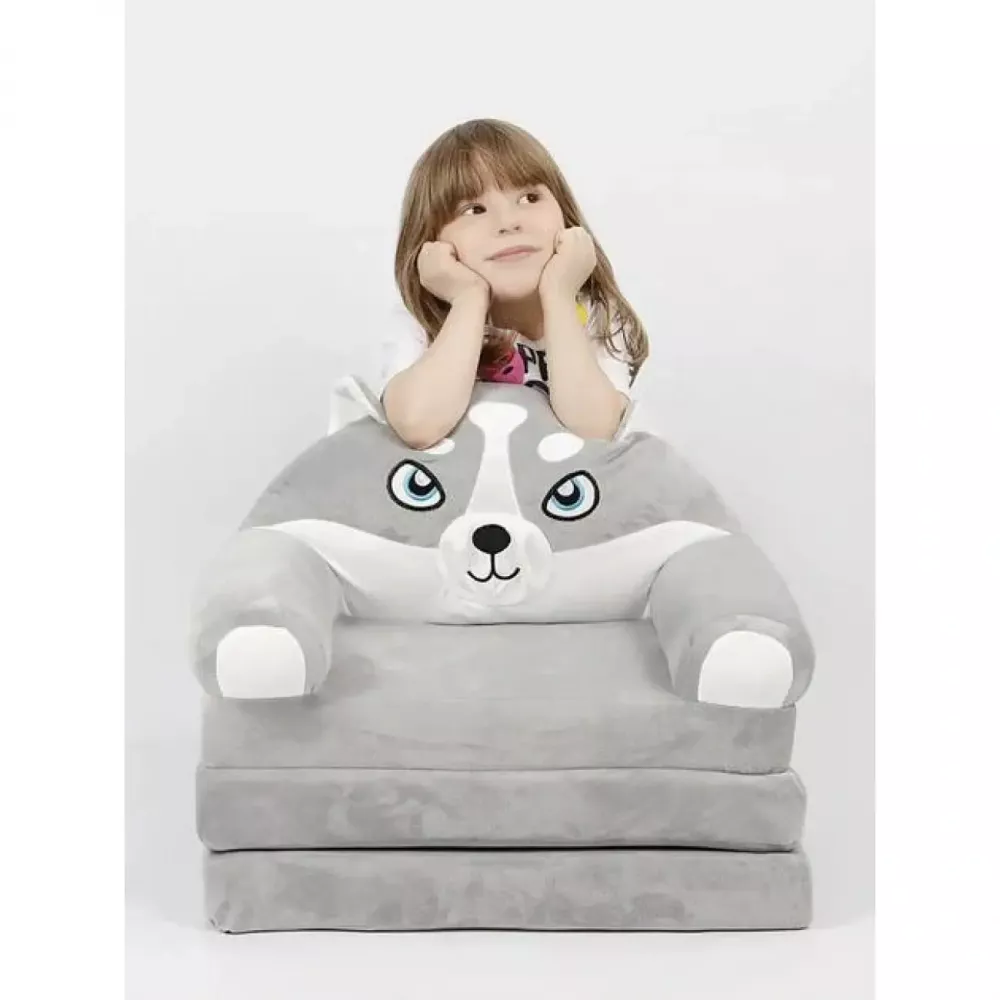 М'яке дитяче крісло плюшеве, м'яке крісло-ліжко для дітей Вовк Сірий