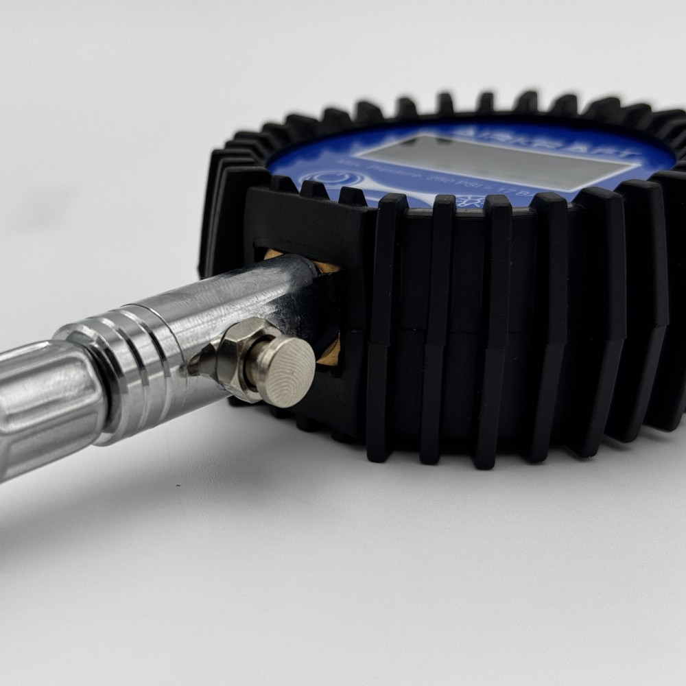Манометр цифровий для перевірки тиску в шинах зі шлангом 0–250 psi (17 бар) AIRKRAFT TPGD0250-S — це високоточний інструмент для вимірювання тиску в шинах широкого спектру транспортних засобів, включаючи легкові та вантажні автомобілі, мотоцикли, позашляховики, а також спецтехніку.