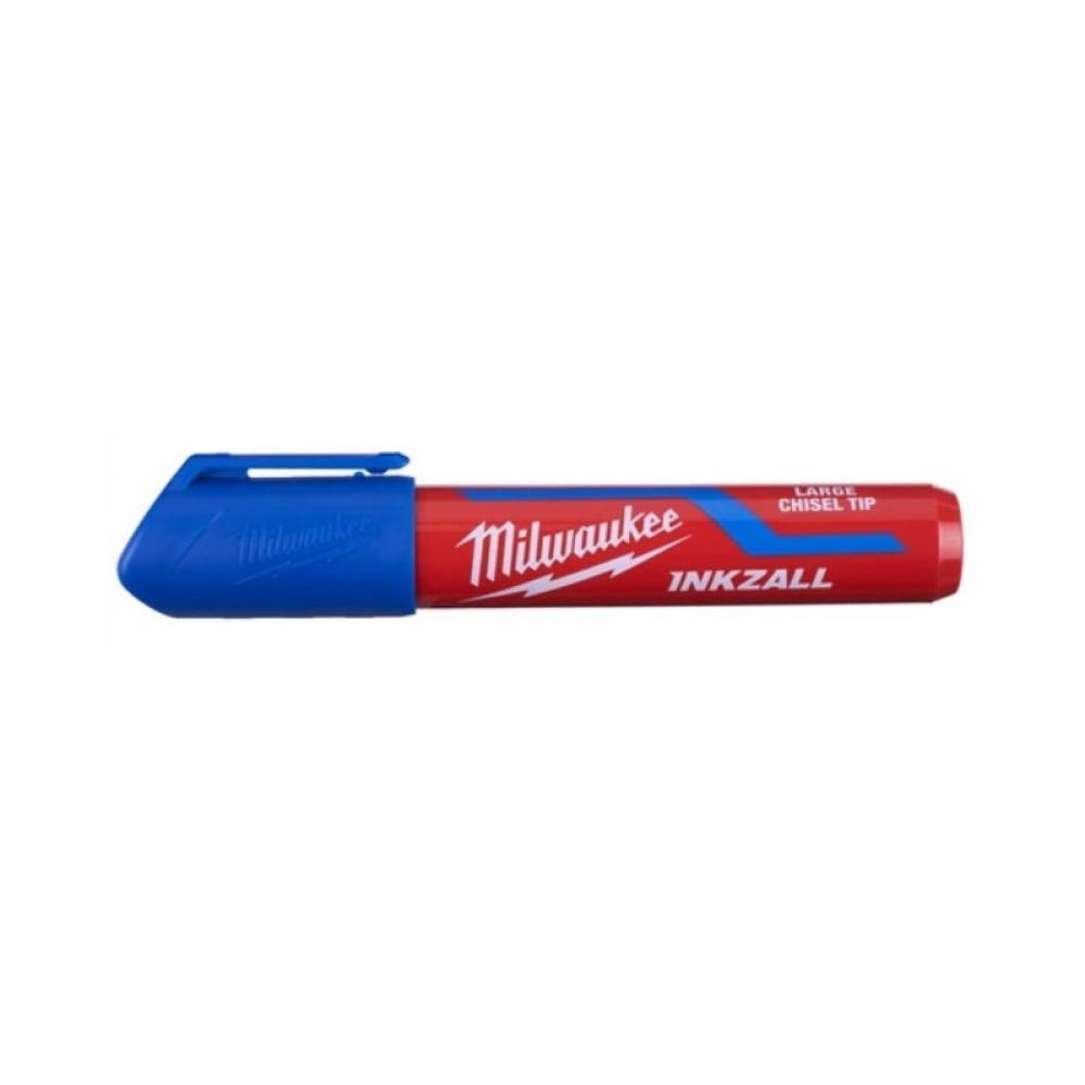Маркер INKZALL для будмайданчика великий синій (1шт, дисплей 12 шт) Скошений наконечник 6,2 мм (L) Власне чорнило, яке не сохне 72 години без ковпачка INKZALLS™ розроблено спеціально для умов будівельного майданчика, для того, щоб писати на запорошених, вологих та маслянистих поверхнях INKZALL™ наконечники стійкі до засмічення та продовжують писати довгий час Лінія висихає за лічені секунди Комплект: 12 шт. Колір синій