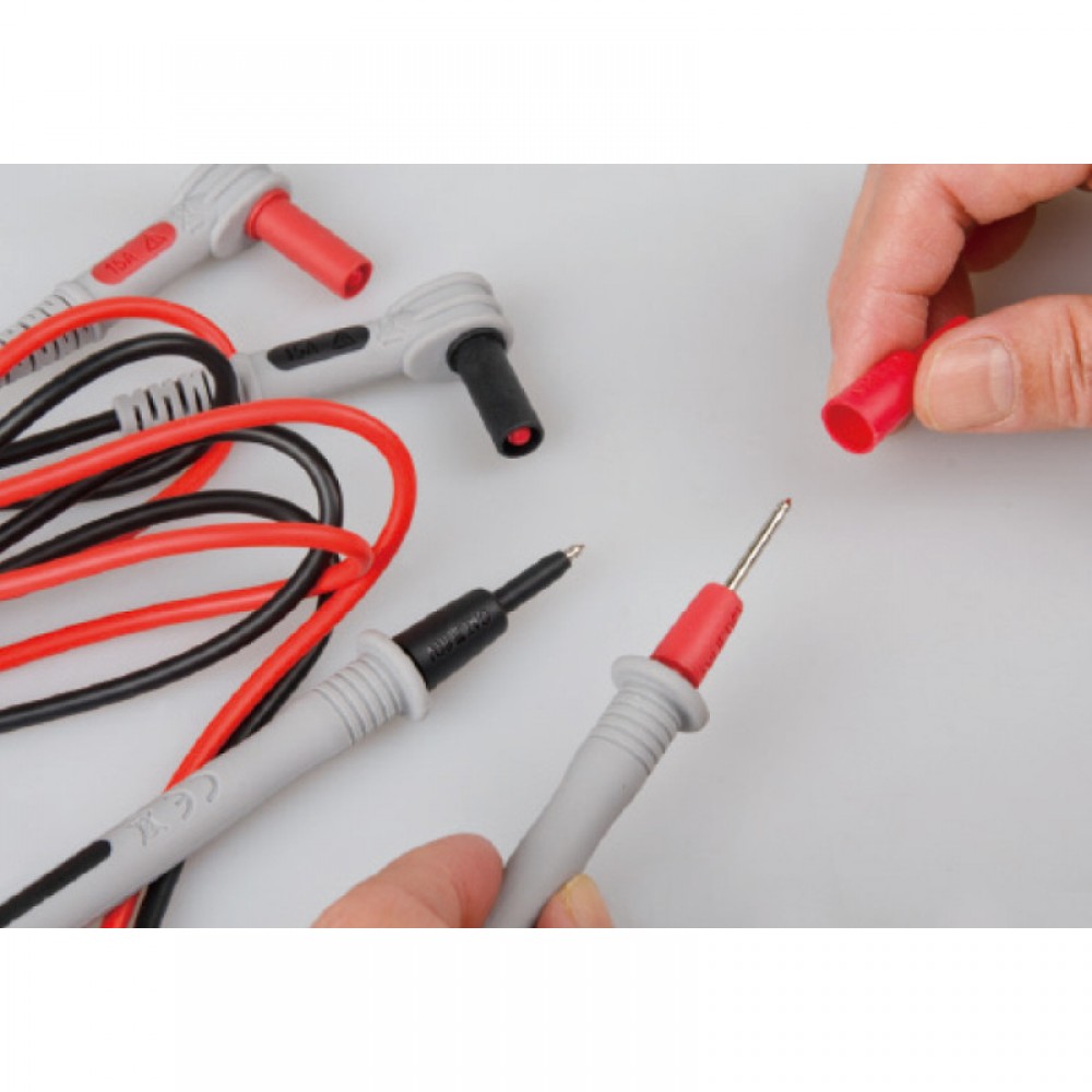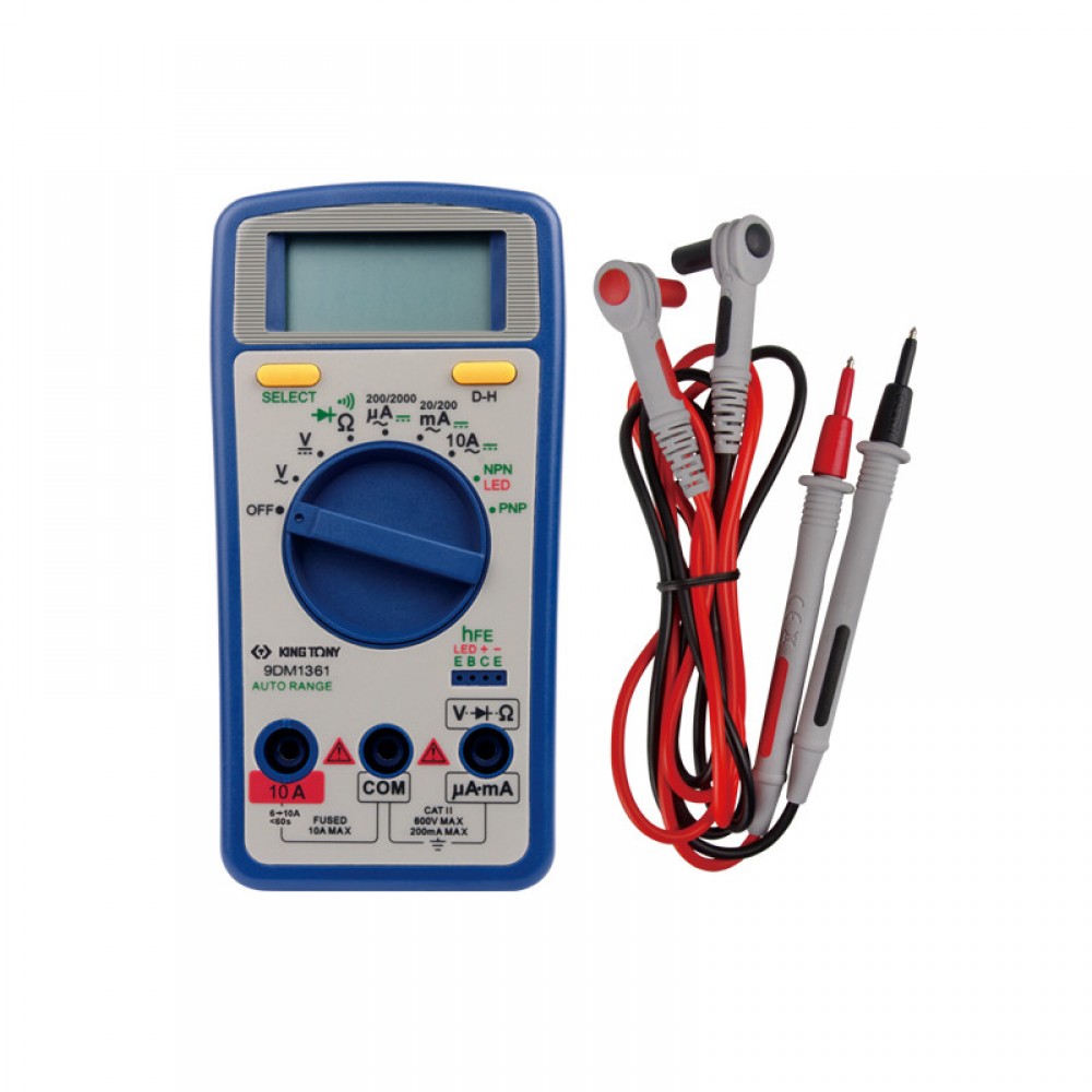 Мультиметр цифровий AC/DC – професійний вимірювальний прилад, який призначений для визначення напруги зі змінним та постійним струмом, а також опору та ємності. Виріб дозволяє перевірити ланцюг на провідність та протестувати діоди з транзисторами. Функціонал докладно викладено у специфікації, що постачається з приладом під час продажу. Електронно-вимірювальний прилад обладнаний інформативним рідкокристалічним дисплеєм із 2000 пікселів. Для зручності користувача, мультиметр має індикатор заряду батареї або акумулятора. На лицьовій панелі приладу передбачено технічне маркування, яке дозволяє власнику безпомилково встановити перемикач на потрібний режим роботи. Негабаритний пристрій зручно лежить у руці, а також легко поміщається в кишеню. Мультиметр підтримує вимірювання напруги змінного та постійного струму в межах 0,1 мВ – 600 Вольт. Заміри можна виконувати для сили струму до 10 Ампер. Прилад комплектується знімними щупами та оснащений запобіжником. Щупи з жорсткими прогумованими наконечниками забезпечують додатковий захист під час роботи з електроприладами, підключеними до мережі. Збереження дати, автодіапазон, автоматичне вимкнення живлення Індикація пристрою та функції, Максимальне значення зчитування у 1999 значень. Індикатор негативної полярності (для позитивної полярності не вказано) Індикатор низького споживання енергії Запобіжник з: 500 мА/660 В та 10 А/600 В Специфікація: Напруги постійного струму (0,1 мВ ~ 600 В) 200 мВ / 2 В / 20 В / 200 В / 600 В Напруги змінного струму (0,001 ~ 600 В) 2 В / 20 В / 200 В / 600 В DC Ampere (0.1uA ~ 10A) 200uA / 2000uA / 20mA / 2A / 10A AC Ampere (0.1uA ~ 10A) 200uA / 2000uA / 20mA / 2A / 10A Опір (0.1Ω ~ 20MΩ) 200Ω / 2kΩ / 20kΩ / 200kΩ / 2MΩ / 20MΩ Перевірка цілісності: Так Діодний тест: Так Hfe (NPN, PNP): Так Перевірка світлодіодів: Так Індикатор розрядженої батареї: Так РК-дисплей: 3-1/2 цифр 2000 одиниць Частота дискретизації: 3 рази/сек.