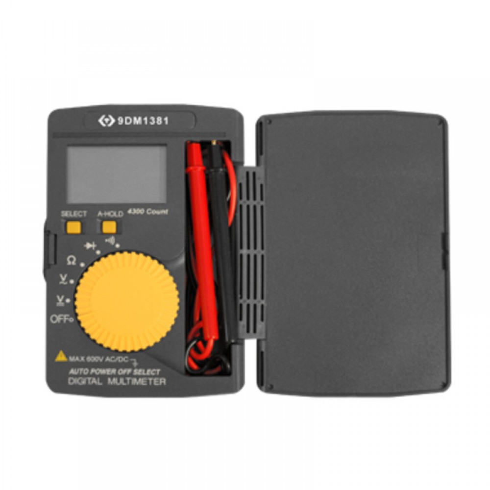 Мультиметр цифровий компактний, AC/DC Pocket size with flip cover design Approx. 4300 counts LCD display Auto range, auto power off selection Low power consumption Attachable test leads, easy operation Specification: DC Voltages (0.1mV ~ 600V) 400mV / 4V / 40V / 400V / 600V AC Voltages (0.001V ~ 600V) 4V / 40V / 400V / 600V Resistance (0.1Ω ~ 40MΩ) 400Ω / 4kΩ / 40kΩ / 400kΩ / 4MΩ / 40MΩ Continuity check : Yes Diode test: Yes Overload indicator: OL & Beep Low battery indicator : Yes Sampling rate: Approx. 2 times/sec