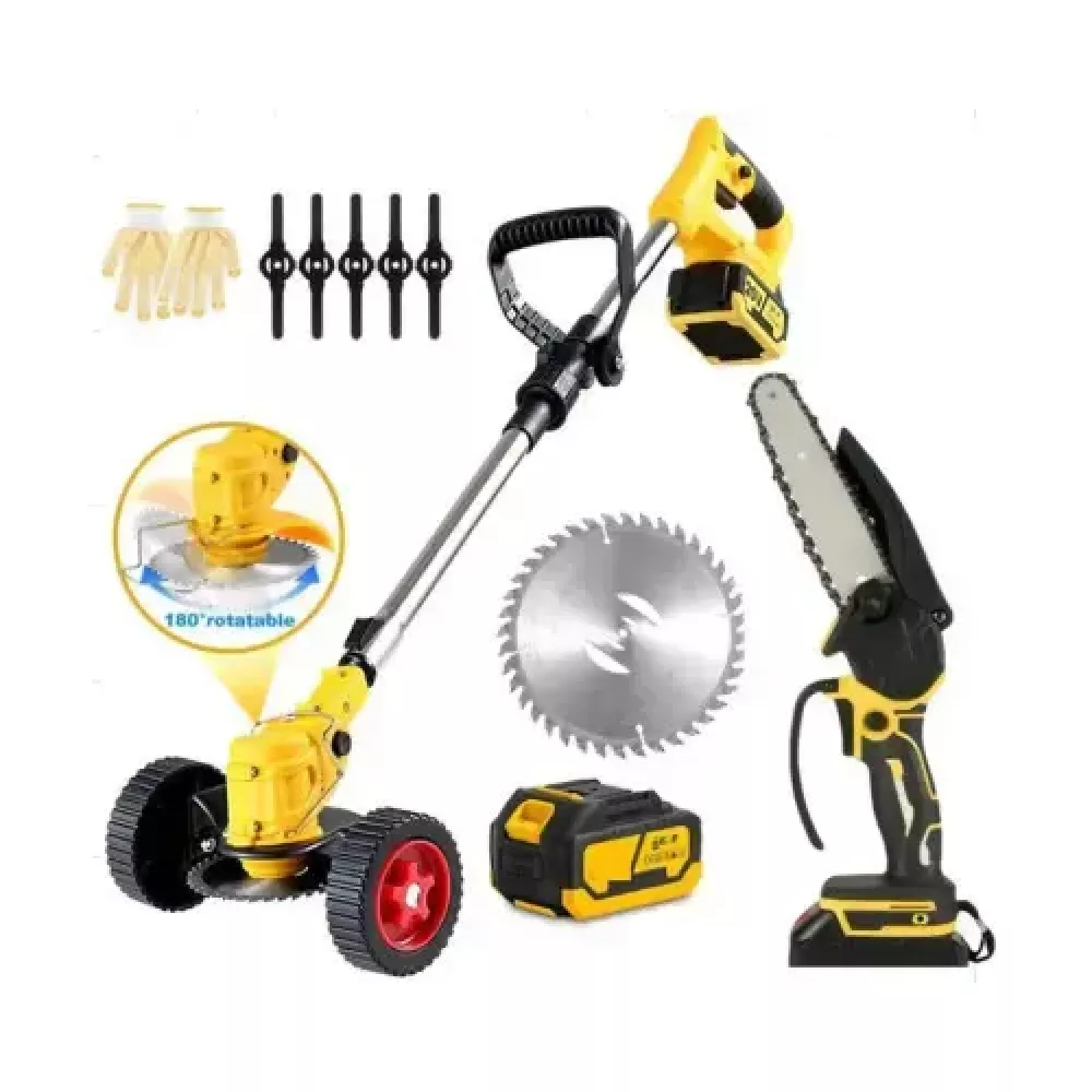 Набір 2в1 Газонокосарка + Пила 24V два акумулятори Даний набір включає дві потужні акумуляторні садові машини - пилку для обрізки дерев 24V і газонокосарку-триммер з колесами. Вони ідеально підходять для комплексного догляду за присадибною ділянкою та вирішення широкого спектру завдань з догляду за садом та газоном. Пристрій працює від потужного літій-іонного акумулятора на 38В, що забезпечує тривалий час автономної роботи та високу продуктивність. Наявність коліс робить процес косіння та тривимірних робіт більш зручним та маневреним. Переваги: Багатофункціональність завдяки 14 взаємозамінним насадкам. Висока потужність та тривалий час роботи від акумулятора 38В. Зручність та маневреність при переміщенні. Повний комплект інструментів та аксесуарів для різних завдань Простота в експлуатації та обслуговуванні Газонокосарка-триммер має потужний акумулятор, завдяки якому вона може довго працювати без підзарядки. Наявність коліс робить переміщення пристрою дільницею простим і зручним. Широкий вибір змінних насадок дозволяє використовувати її для різних садових робіт. Тример: Тип живлення: акумуляторний Час роботи від одного акумулятора: 30-45 хвилин Вхідна напруга: 24 В Регульована телескопічна штанга Можливість зміни кута нахилу ріжучої частини Вага: оптимізована для зручності використання без зайвого навантаження на користувача Пила 24V – оснащена високопродуктивним літій-іонним акумулятором, який забезпечує тривалий час роботи без заряджання. Компактний дизайн і мала вага дозволяють легко маневрувати та обрізати гілки дерев та чагарників. Міні-пила: Акумулятор Тип батареї: Li-ion Місткість батареї: 3 А/год. Напруга живлення: 24 В Швидкість ланцюга:6 м/сек Довжина шини: 10 см Крок ланцюга: 1/4” В комплект входять: сам триммер, 5 пластикових лез, 2 металеві леза, 1 пиляльний диск, 2 акумулятори на 24В,1 пила на 24В, зарядний пристрій, ручка, коробка та докладна інструкція російською мовою. Все необхідне для ефективної та комфортної роботи на садовій ділянці.]]>