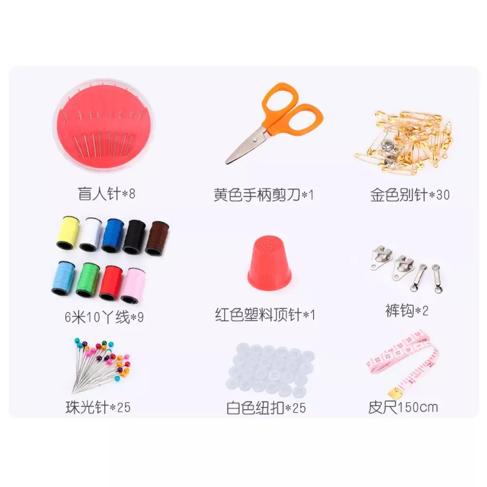 Компактний швейний набір у прямокутній коробочці включає все необхідне, щоб надати першу допомогу улюбленому одязі.