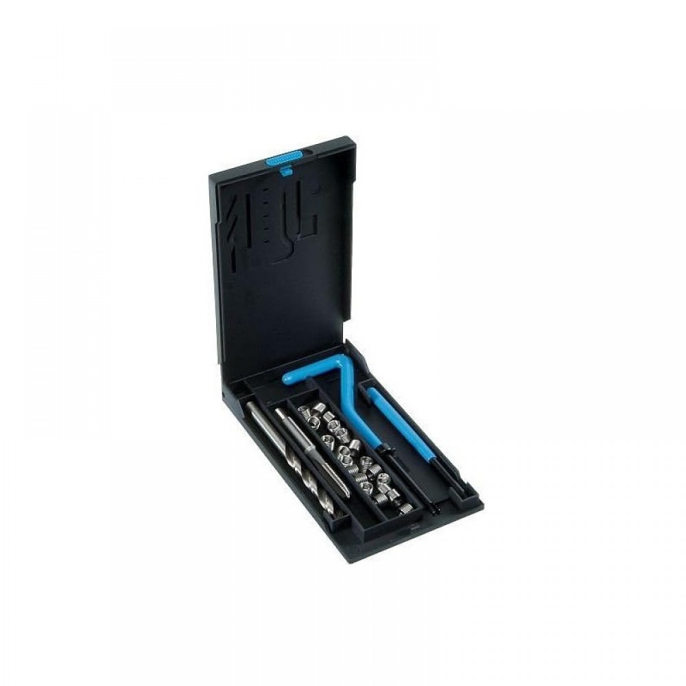 V-COIL Набір для відновлення різьблення M 20x2,5 для нарізки різьблення вручну більш висока здатність навантаження після ремонту за рахунок кращих властивостей різьблення, температурна та корозійна стійкість привабливий та функціональний презентаційний футляр Зміст: 1x STI-Короткі метчики, ForD, HSS-G, 20 x 2,5 VÖLKEL 03038 5 дротяних різьбових вставок – тип S – вільний хід M 20 x 2,5 – 1,5 D 1x Інструмент для встановлення зі стопорним кільцем, № 21 VÖLKEL 08021