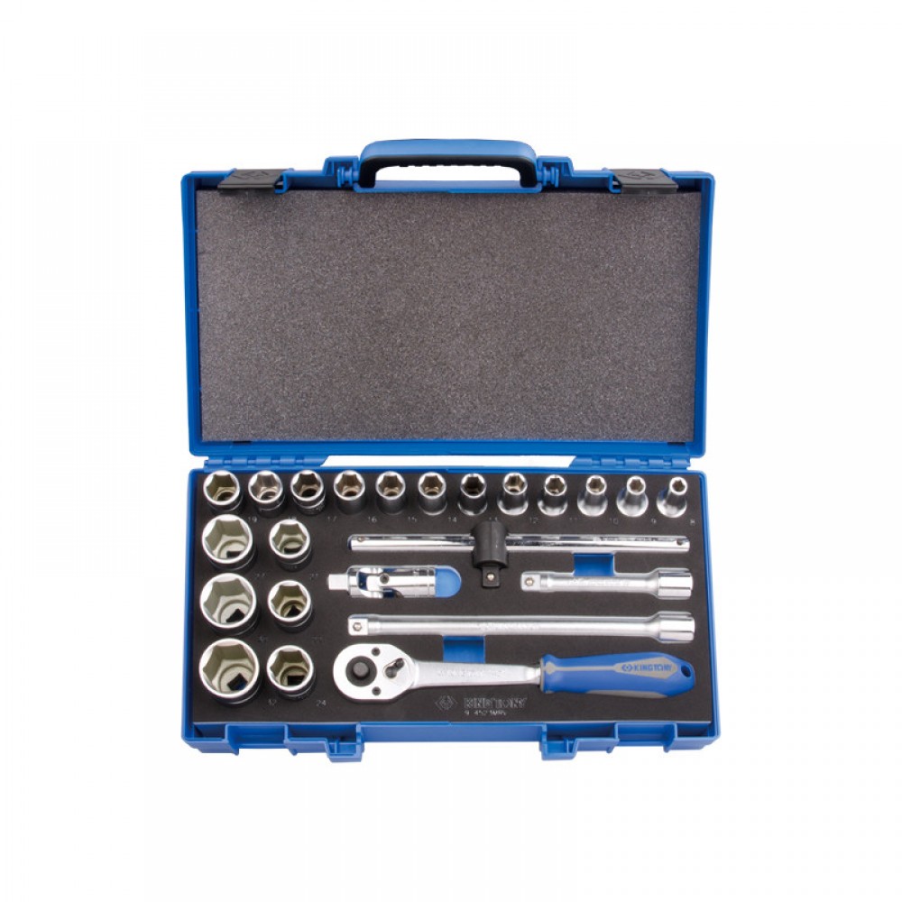 Набір головок 1/2" 23 од. 6гр. 8-32мм KINGTONY 4523MRV01 Торцеві головки 4335MR: 8, 9, 10, 11, 12, 13, 14, 15, 16, 17, 18, 19, 21, 22, 24, 27, 30, 32 Тріскачка з релізом 4771-10GR Кардан Подовжувач: 125, 250мм Вороток ковзний
