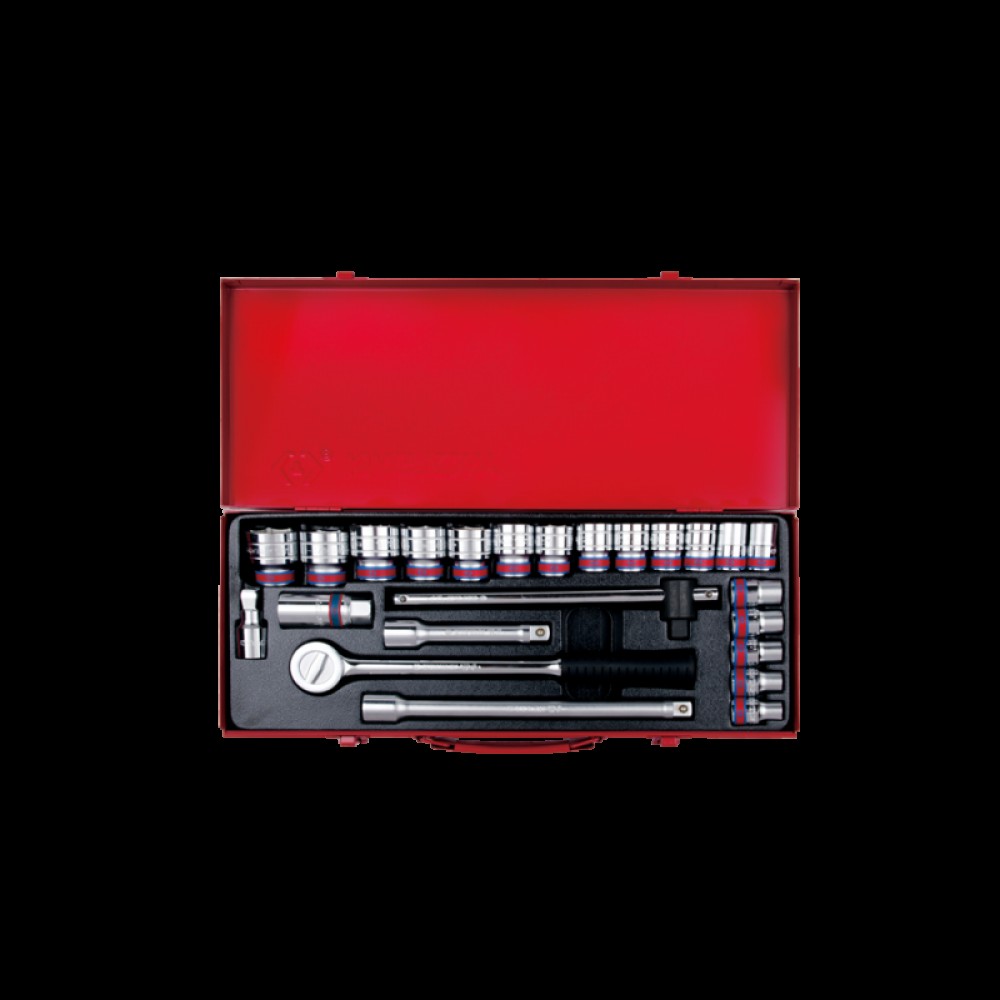 Виготовлений інструмент із хромованадієвої сталі. Оздоблення – хромування та полірування. У комплекті є металева скринька з пластиковим ложементом. Торцеві дюймові головки, короткі, мають 6 граней. Інструмент реалізований у вигляді коміра та тріскачки. Доповнений подовжувачами та карданом.