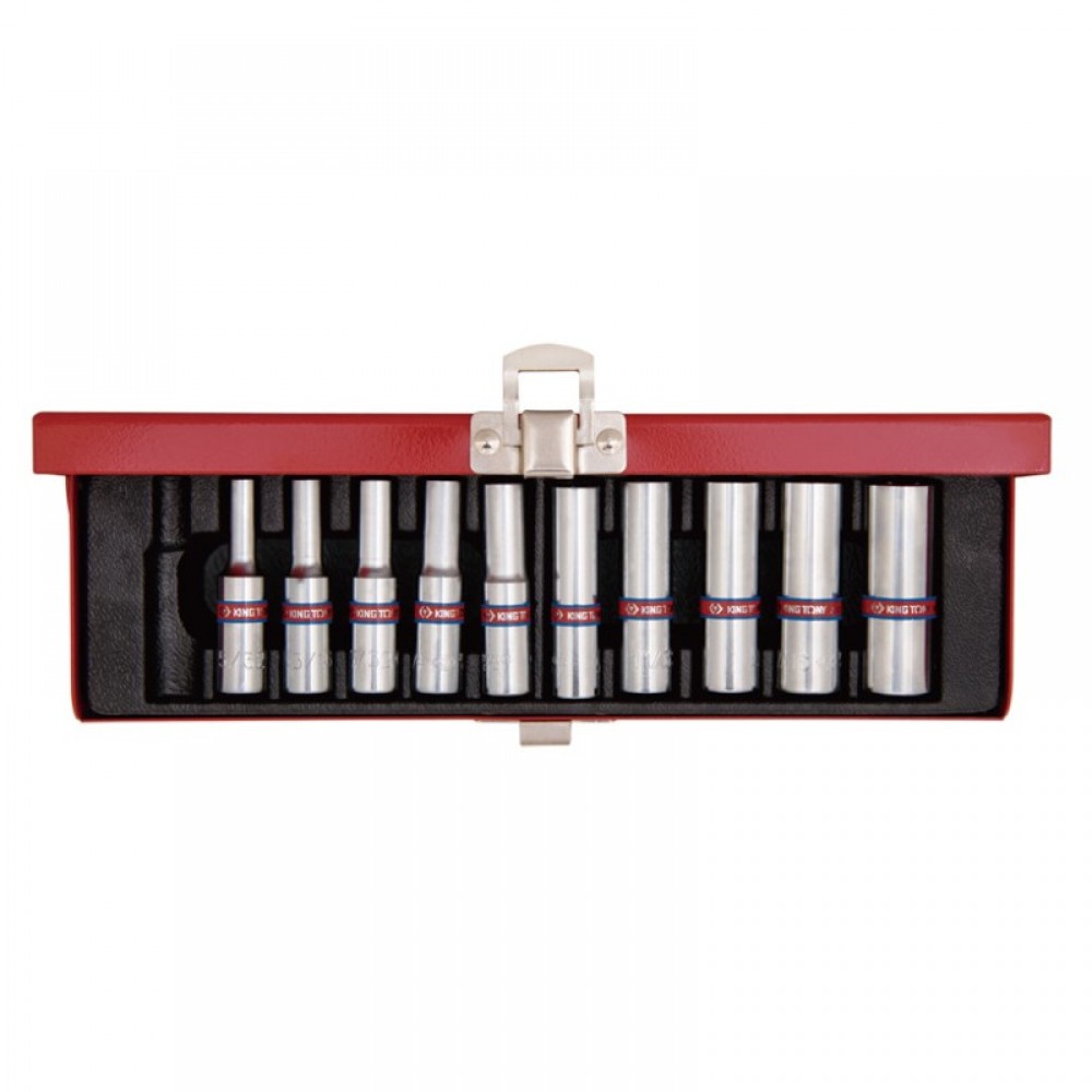Набір глибоких головок торцевих 1/4", шестигранні, 5/32"-1/2", 10 предметів KING TONY 2510SR 2235S 5/32, 3/16, 7/32, 1/4, 9/32, 5/16, 11/32, 3/8, 7/16, 1/2