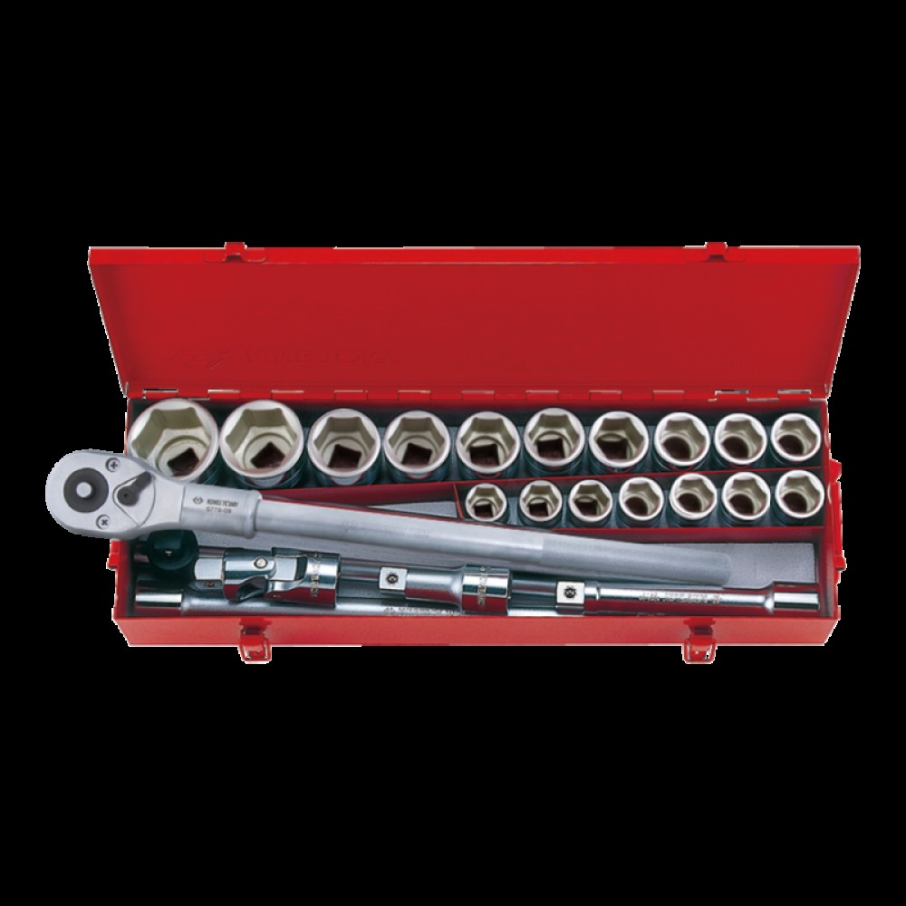 Набір головок 3/4" 25 од. 6-ти грані (19-55мм) KING TONY з принаддям в металевому кейсі