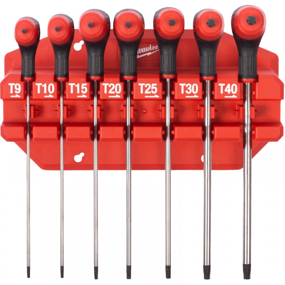 Набір ключів Г-образних MILWAUKEE з комфортною ручкою, Hex з кулькою, (T9/T10/T15/T20 /T25/T30/T40) (7шт) пластиковий холдер