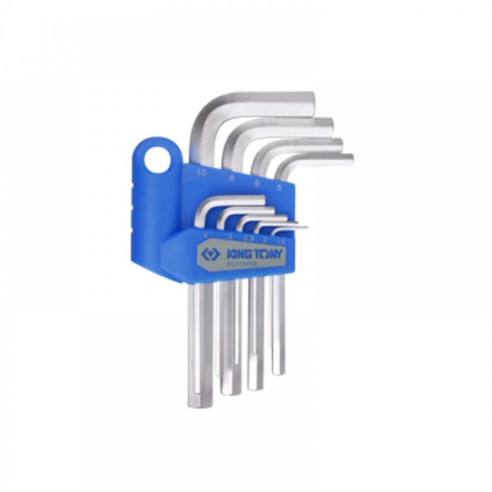 Призначення Набір дюймових Г-подібних шестигранників KING TONY 20219SR призначений для роботи із внутрішнім шестигранним профілем кріплення вузлів різних виробів, пристроїв та агрегатів. Особливості набору • Форма шестигранників дозволяє застосувати різне плече застосування навантаження залежно від розташування кріпильного вузла та його доступності: у поглибленні, в обмеженому просторі та ін. • Матеріал SNCM+V - легована сталь із додаванням молібдену, покриття хром. Шестигранники 1/16, 5/64, 3/32, 1/8, 5/32, 3/16, 1/4, 5/16, 3/8