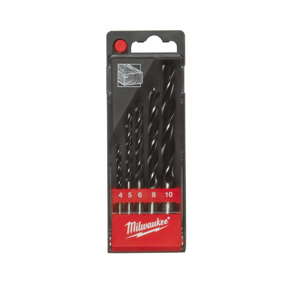 Набір триточкових свердлів із 5-ти шт. по дереву (4/5/6/8/10 мм) DIN 7487 MILWAUKEE 4932352465