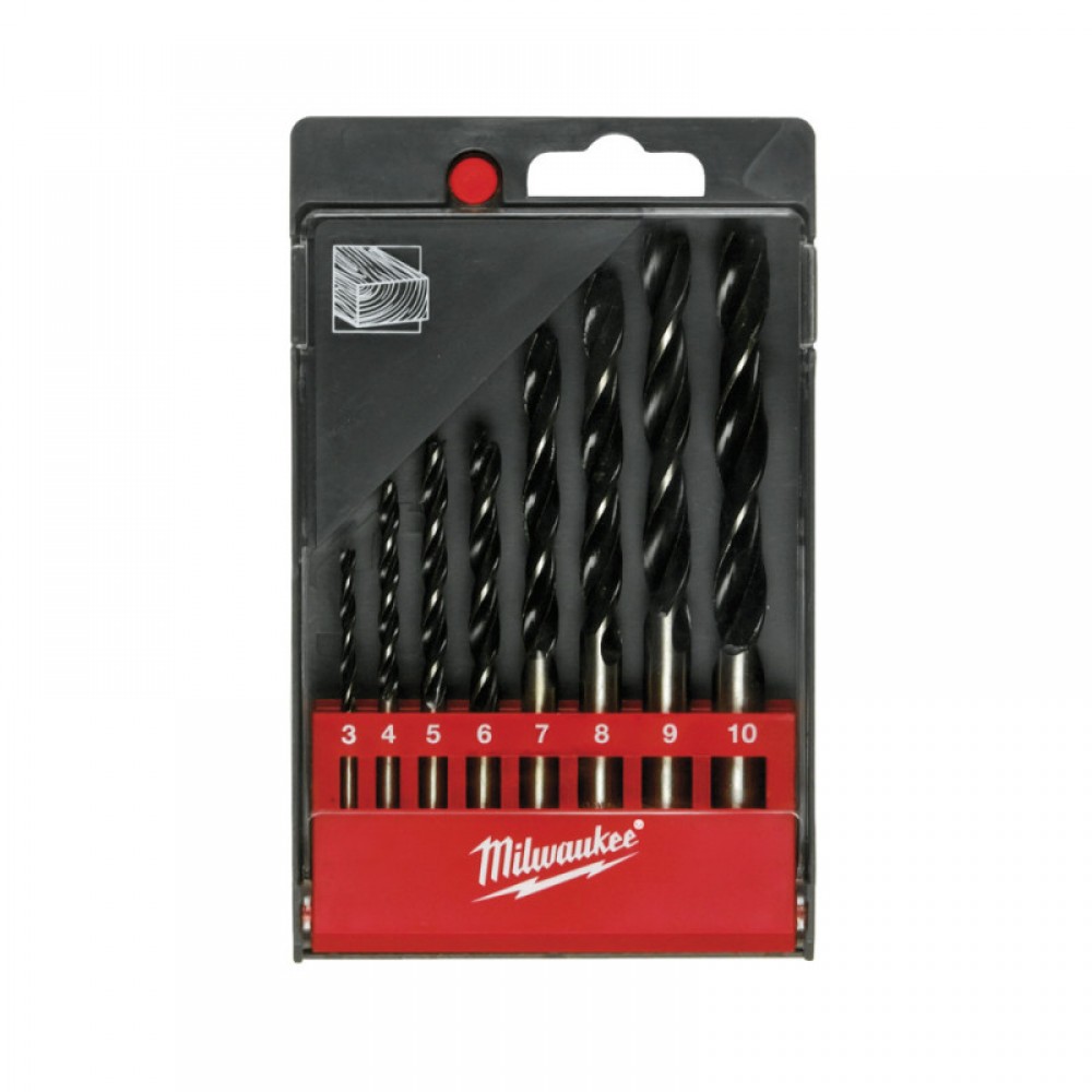 Набір триточкових свердлів з 8 шт. по дереву (3,4,5,6,7,8,9,10мм) DIN 7487 MILWAUKEE