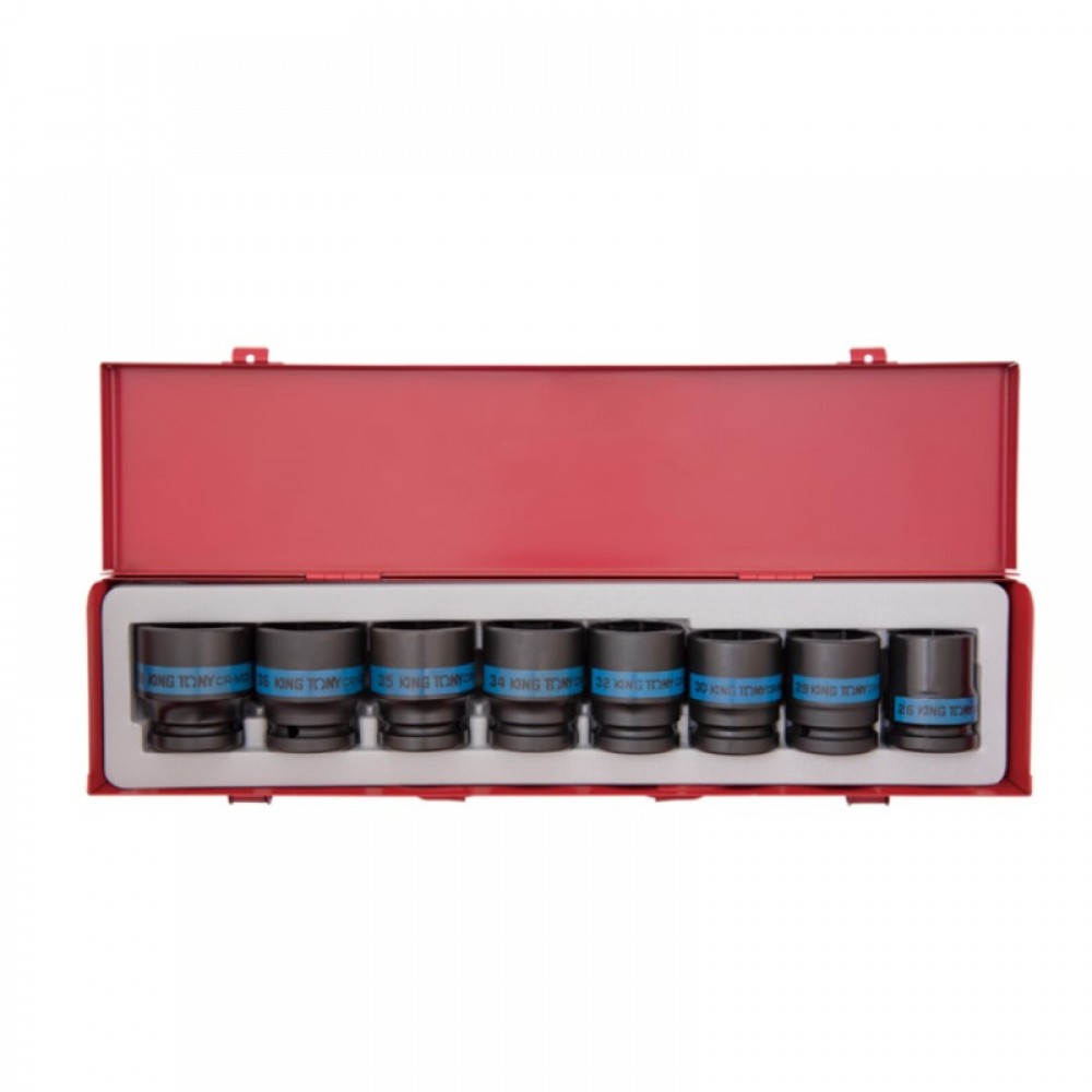 Набір ударних торцевих головок 3/4", шестигранні, 21-41 мм, 8 предметів KING TONY 6409MP03. особливу міцність та стійкість до ударних навантажень, а фосфатоване покриття захищає від корозії. Головки розміщені на ложементі ПВХ та у металевому кейсі. Розміри кейсу: 445 x 100 x 65 мм Що входить до складу набору Головки торцеві ударні шестигранні 3/4" серії 6535M - Розміри: 21, 22, 24, 27, 30, 32, 36, 41 мм