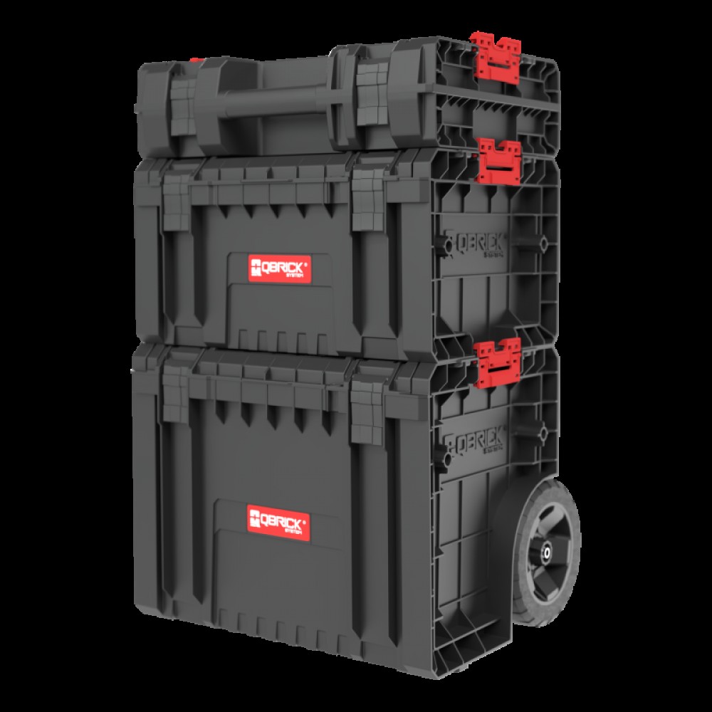 Набір ящиків QBRICK SYSTEM PRO Set 1 (Z254935PG001) – це мобільна система зберігання інструменту. Є комплектом з 3-х інструментальних ящиків, доповнений візком на великих колесах. Конструкція модульна - за бажанням, всі ящики можна використовувати окремо. Орієнтований набір на промисловість, будівництво та автосервіс. Вигідно купити набір ящиків QBRICK SYSTEM PRO Set 1 Відмінна місткість, мобільність, висока міцність контейнерів, доступна ціна – перелік переваг, якими можна коротко описати набір. Скриньки між собою з'єднуються пластиковими клямками. У зібраному стані модульну систему легко транспортувати або зберігати на складі. Мобільність забезпечує колісна база – 2 колеса із пластиковими дисками та гумовим протектором. Виготовляються ящики із міцного полімеру, є ребра жорсткості, що підвищують міцність кожного елемента окремо. Це дозволяє використовувати ящики як сходинок для роботи на висоті, якщо немає стільця або сходів. Усередині кожного ящика є знімні контейнери для дрібних деталей та витратних матеріалів. Між собою, контейнери відрізняються місткістю. Габарити конструкції у зборі – 450х390х705 мм.