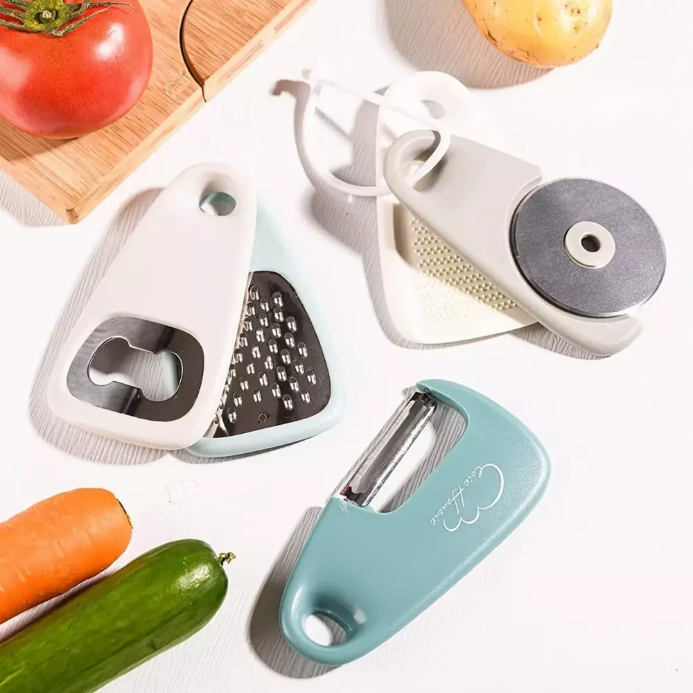 Очищайте овочі за допомогою гнучкого очищувача, що обертається, а пиво або газировку відкривайте за допомогою відкривалки для пляшок. Ці інструменти не лише ефективні, а й економлять місце. Помістіть їх у будь-яку шухляду, повісьте на стіну для легкого доступу або просто упаковайте для подорожі.
