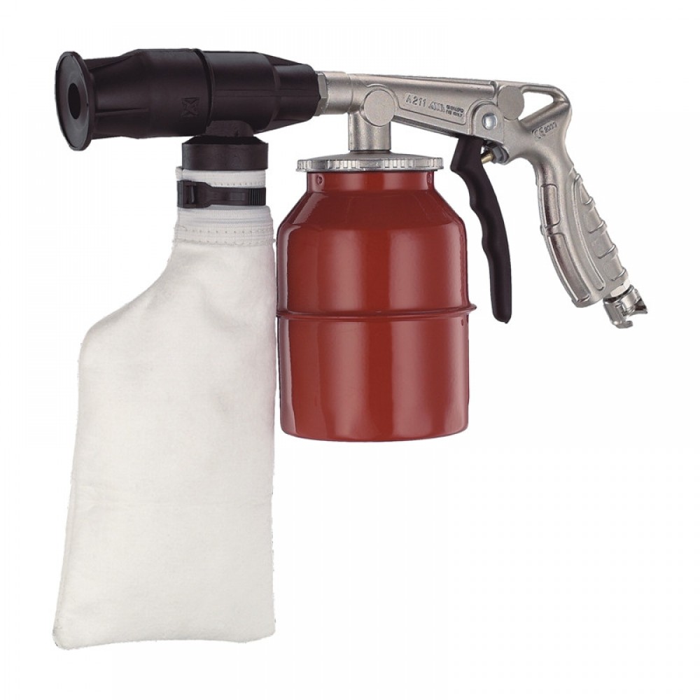 Купити набір для піскоструминної обробки – найкраща ціна Пневматичний інструмент простий у користуванні та демонструє відмінну ефективність у роботі. Всі компоненти змінні доступні до придбання в магазині LDinvest. Конструкція дуже проста. Працює інструмент піскоструминної обробки згідно із законом Бернуллі. Абразивний матеріал подається в струмінь стисненого повітря та розпорошується через сопло інструменту. Надлишки піску надходять у мішок для складання сміття. Тиск повітряної суміші регулюється клапаном, який керується силою натискання курка. Інструмент для піскоструминної обробки одноручний. Підходить для шульги та правші. Мала вага, компактні розміри, зручна ціна – такий пристрій стане в нагоді в будь-якій сфері діяльності, де використовується пневматичний компресор. Технічні характеристики набору піскоструминної обробки AH0913004A: