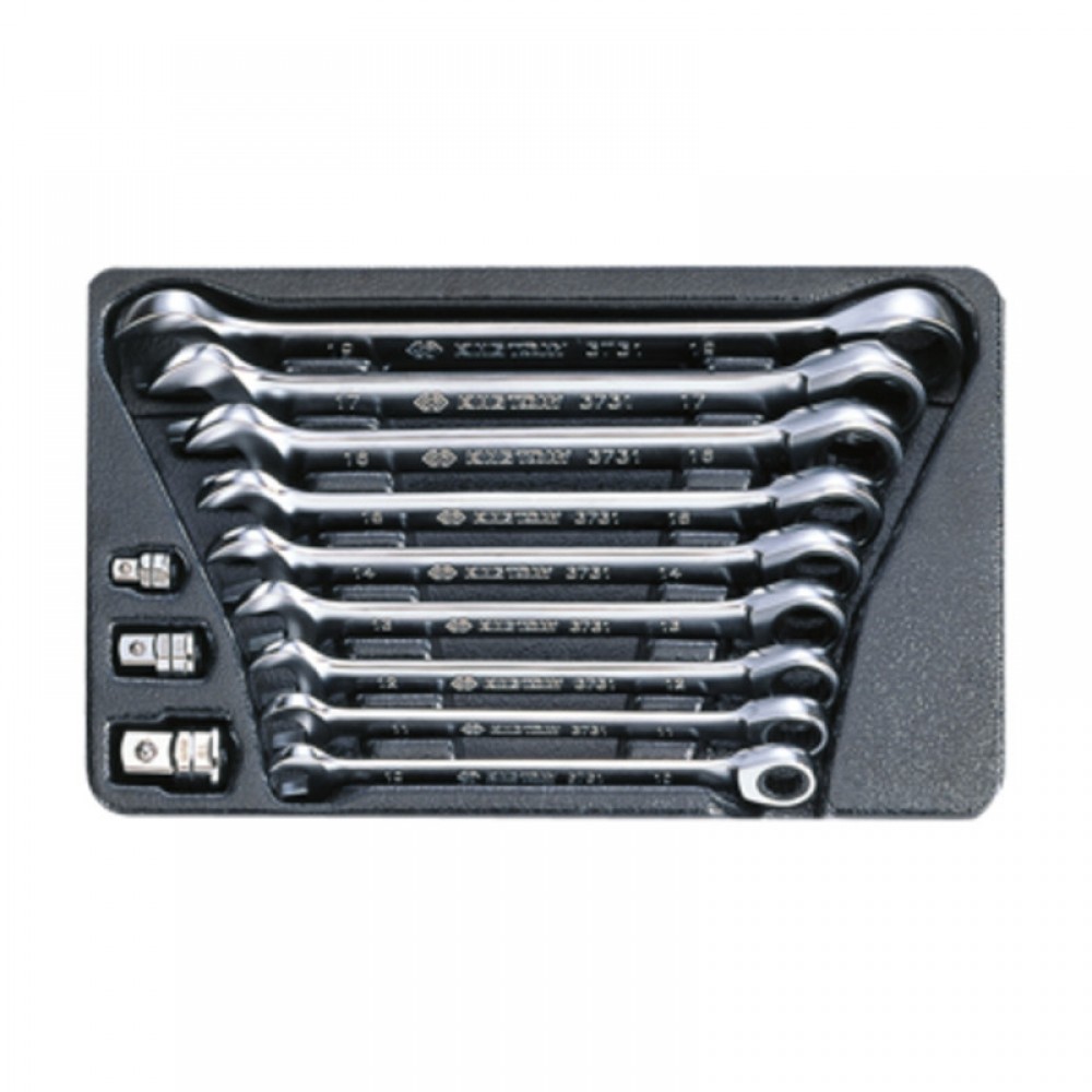 Набір ключів ріжково-накидних з тріскачкою 10-19мм та перехідники на 1/4", 3/8", 1/2" - Ключі комбіновані 3731М (10, 11, 12, 13, 14, 15, 16, 17, 19) - Перехідники 3732R (1/4", 3/8", 1/2")
