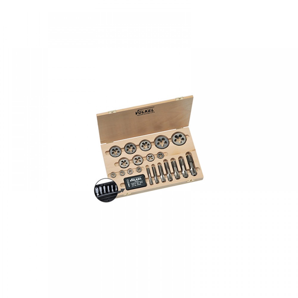 Переваги набору VOLKEL (48628_vl) з 12 предметів: · Найбільш затребувані розміри різьблення – 1, 1/2, 1/4, 3/4, 3/8 дюймів.· Один і той же інструмент виконує чорнову та фінішну обробку.· Оснащення зручне для роботи в важкодоступних місцях.· Для дрібних мітчиків є спеціальний пластиковий контейнер. · Набір поставляється в дерев'яному кейсі (є вирізи-ложементи).