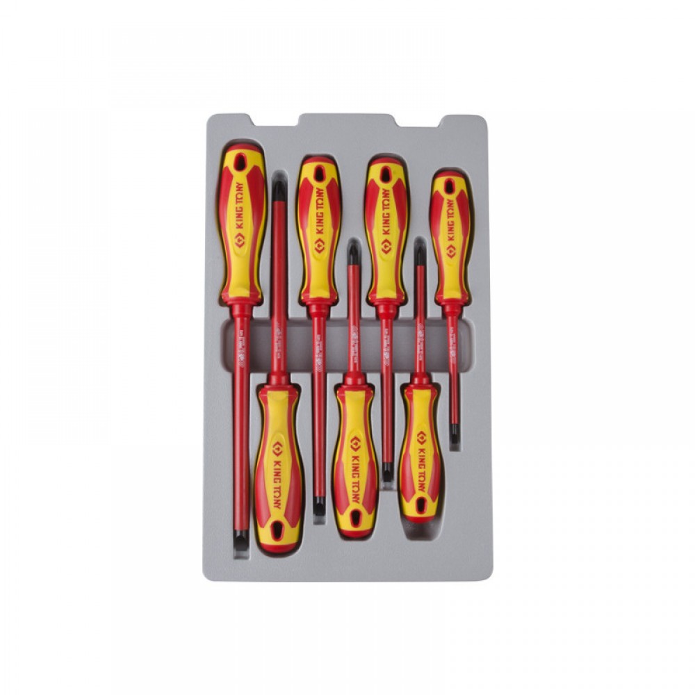 Призначені для роботи з електроустановками, що знаходяться під напругою змінного струму Матеріал - сталь SNCM+V, PP+TPR Викрутка, серії 1471: No.1 x 100, No.2 x 100, No.3 x 100 Викрутка, серії 1472: 4 x 100 , 5.5 x 125 , 6.5 x 150 , 8.0 x 175 Кількість предметів: 7 шт Вага: 0.915 кг