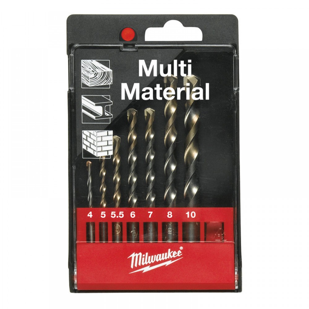 Набір свердл універсальний Milwaukee (7 шт) Опис Свердла по металу, дереву та каменю, але тільки в режимі свердління. Ударний режим необхідно вимкнути Вироблено в Німеччині. Комплектація 4/5/5.5/6/7/8/10 мм Пластикова касета