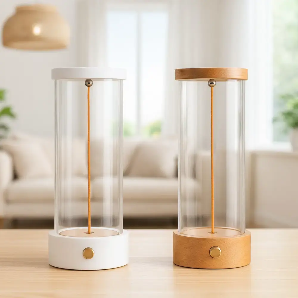 Головною особливістю моделі є інноваційний магнітний гнучкий світлодіодний елемент. Легке струшування – і світлова нитка набуває довільної форми, створюючи унікальний світловий малюнок. При перевертанні лампи джерело світла знову акуратно розташовується вертикально.