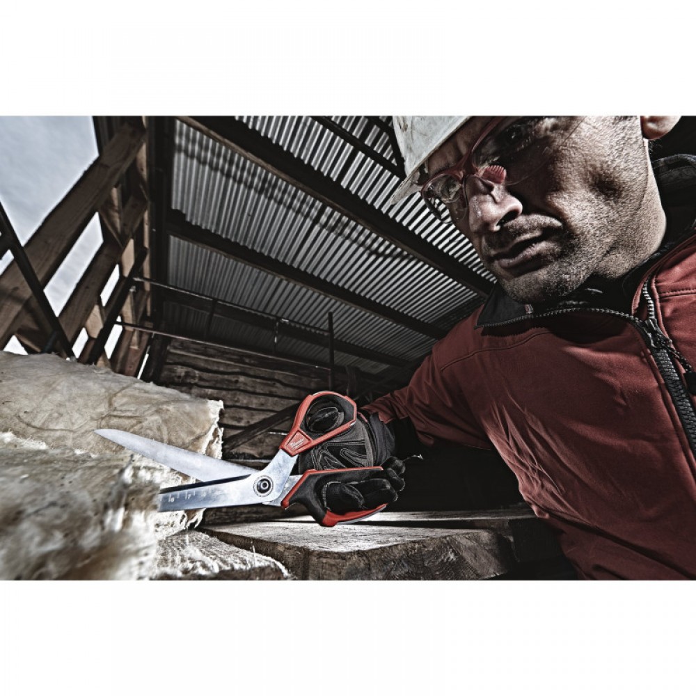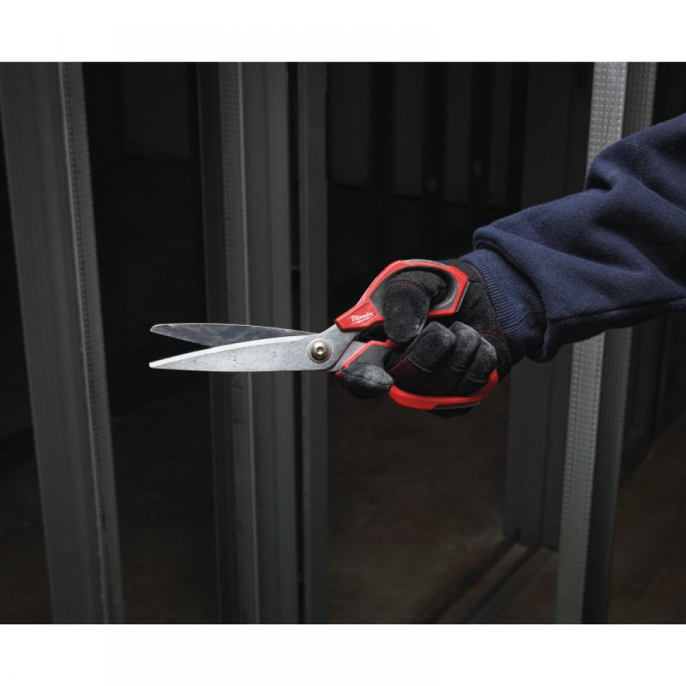 Ножиці прямі (1 шт) (заміна для 48224044) Мікрокарбідне покриття ріжучих кромок для максимальної міцності. Більший термін служби, порівняно з нержавіючою сталлю. Леза покриті хромом для максимального захисту від корозії. Цілком металеві ручки для захисту від поломок. Технологія сполучного гвинта перешкоджає розхитування лез, що підвищує точність різання. Великі петлі ручок дозволяють працювати у рукавичках. Паз для вказівного пальця для більшого комфорту під час роботи. Нанесене лазером маркування на лезі дозволяє відміряти та різати одночасно. Мікрозазубрини на ріжучій кромці для захоплення матеріалу та покращення різу. Нахил лез на 60 ° дозволяє тримати руку над матеріалом.
