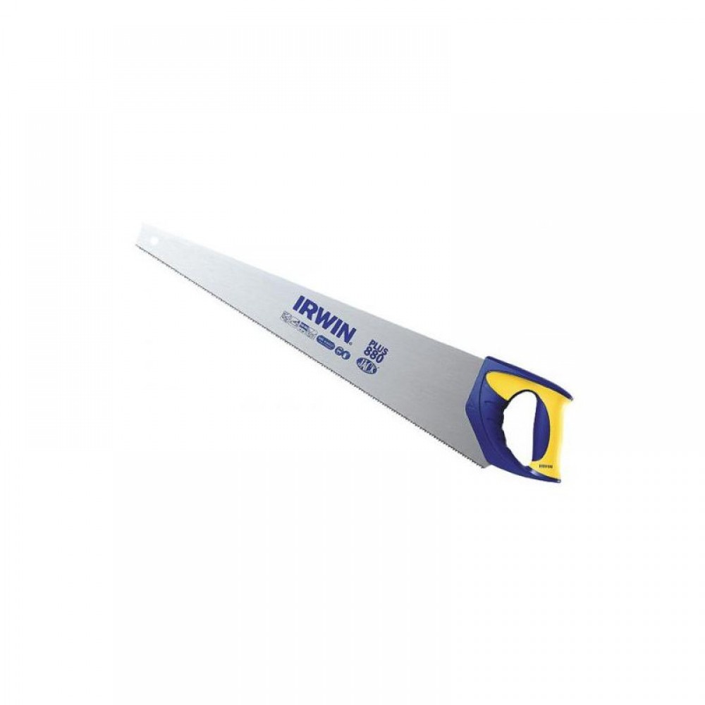 Ножівка по дереву 500мм 8T/9P універсальна Plus, IRWIN Призначена для пиляння заготовок з деревини м'яких та твердих порід, фанери, ДСП, ПХВ. Жорстке полотно товщиною 0,85 мм із високоякісної холоднокатаної сталі С75, для максимальної стабільності та передачі зусилля оператора. Зуби мають тригранну заточку, виконану за технологією TGT, це дозволяє виробляти пиляння, коли пила рухається не тільки вперед, а й назад. Оптимізоване розведення зубів для швидкого старту, чистого та прямолінійного різу Універсальний розмір і відстань зубів 8TPI/9Р дозволяє пиляти деревину як уздовж, так і поперек волокон, а також створює ефективне відведення для тирси. Лезо інструменту покрите антикорозійним лаком на водній основі, що в 4 рази надійніше і довговічніше, ніж традиційне покриття. Дуже зручна ергономічна ручка із двох матеріалів, приварена ультразвуком для надійної фіксації. Також ручка має збільшене коло рукоятки (гарантує ідеальне відчуття контролю в процесі різання) та оптимізований простір для рук, що надає більше комфорту для роботи в рукавичках. Рукоятка має грані для побудови кутів 90 і 45 для зручності при розмітці. Асортимент ножівок IRWIN ® Jack® є найкращими у своєму класі ручними пилками для сучасних професіоналів. Передова технологія зубів та ергономічна рукоятка ProTouch™ роблять ручні пилки IRWIN найкращим вибором для швидкості, простоти та якості різання.