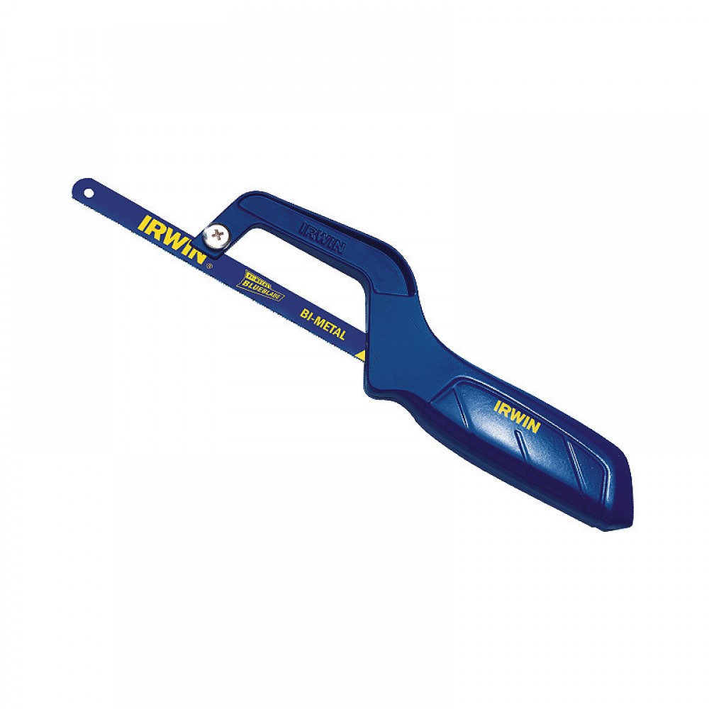 Ножівка з металу Mini IRWIN 10504408 Ножівка для різання у важкодоступних місцях Безпечне та зручне пиляння завдяки випрофільованій рукоятці Солідна сталева рама яка продовжить термін служби інструменту Комплектується біметалічним полотном 24TPI/250мм.