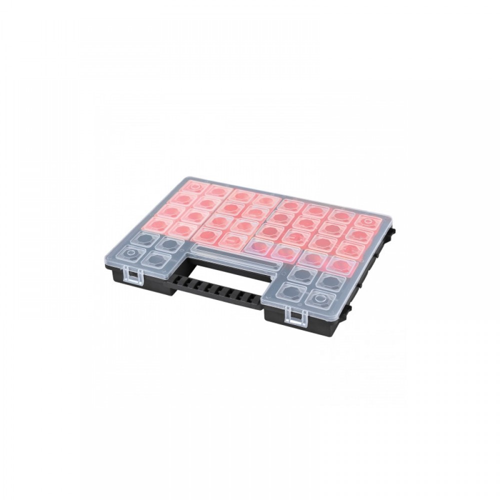 Органайзер Organiser Tandem C 400 (385 x 283 x 50)Прозора кришка, 14 ємностей Combibox в різних розмірах, можливість з'єднання двох органайзерів, зручний у транспортуванні. 385 x 283 x 50 Найважливішою особливістю, яку має органайзер, є Combiboxy, який значно полегшує роботу. Органайзер відрізняється міцністю, функціональністю, естетичною обробкою та сучасним дизайном. зберігання дрібних деталей. Доступні 4 розміри, вони можуть бути адаптовані до індивідуальних потреб. Прозора кришка дозволяє швидко знайти потрібні предмети. Ще однією перевагою є можливість об'єднання двох органайзерів кожного розміру, щоб вони отримували додаткові функціональні можливості як при зберіганні, так і при обробці.