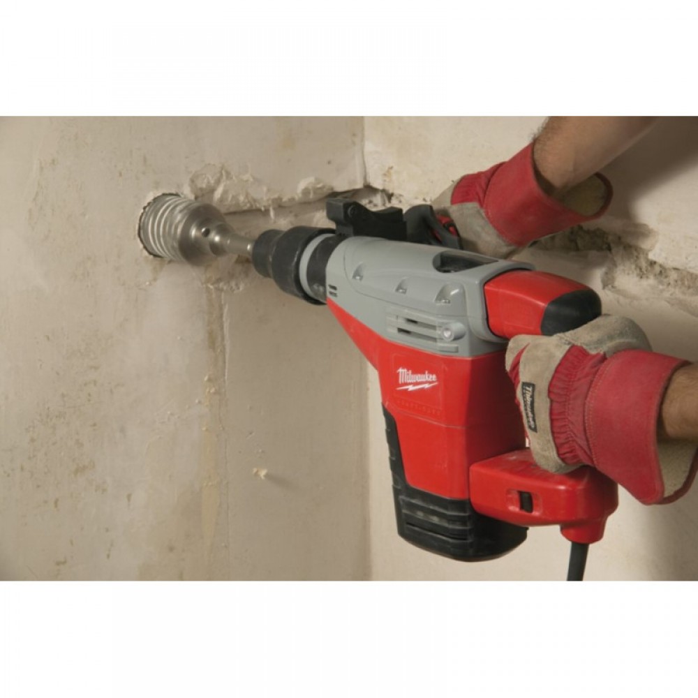 Потужність 1300; діаметр 45/100; енергія удару 8,5Дж; вага 6,7; 6м кабель; бічна рукоятка; мастило; гостре долото; валіза Особливості Посилений бойок забезпечує максимальну енергію удару Висока потужність 1300 Вт та ефективна система тепловідведення гарантують максимальну надійність. Електроніка підтримує постійні оберти навіть під навантаженням М'який старт для прецизійного початку довбання/свердління AVS (антивібраційна система) та покриття soft grip передньої та задньої рукояток Додаткова рукоятка може бути зафіксована у трьох різних положеннях функція м'якого удару - знижує енергію удару - для довбання крихких матеріалів Функція відключення удару та встановлення положення долота Сервісний індикатор Variolock (12 положень) для встановлення положення долота під різними кутами 6 м кабель milwaukee Характеристика Потужність (Вт) 1300 Енергія удару (EPTA) (Дж) 8.5 Ударна дія при навантаженні (уд/хв) 2840 Швидкість при навантаженні (об/хв) 350 Макс. діаметр свердління буровою коронкою (мм) 45 Макс. діаметр тунельним буром (мм) 65 Макс. діаметр свердління коронками (мм) 100 Тип хвостовика SDS Max Ударне свердління (м/c2) 13 Рівень вібрації при довбанні (м/с2) 9 Вага (кг) 6.7 Постачається в Кейсі