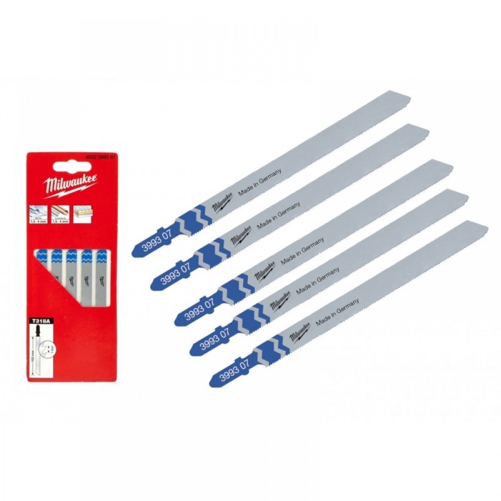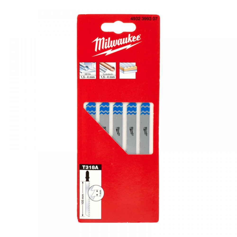 Полотна для лобзика T318A MILWAUKEE, 105мм/ крок зуба 1,0мм, (5шт), (універсальні)