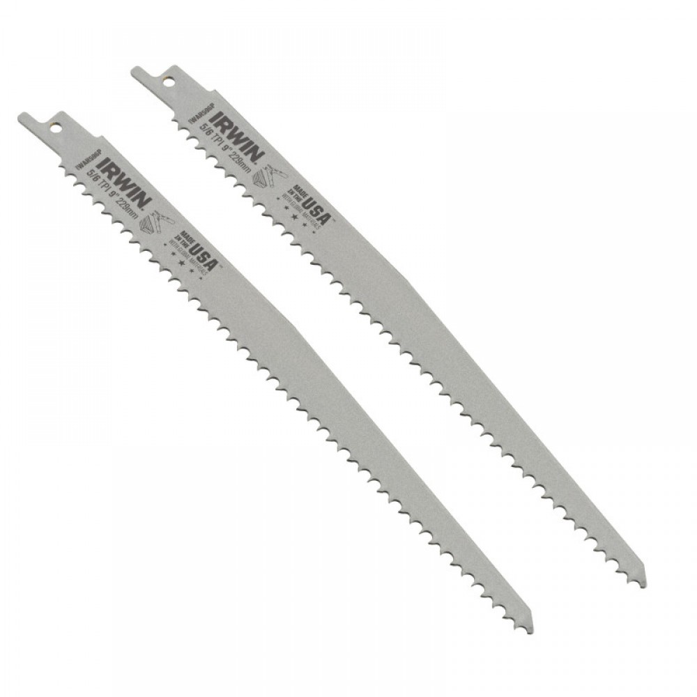 Полотно для шабельних пилок, по дереву 9"/225мм, 2шт., IRWIN Відмінно підходить для різання гілок, дерева, композитних матеріалів та пластику. Полотно пили має агресивні зубці для швидкого різання. Може використовуватися на шабельних пилах всіх поширених марок. Довжина: 225 мм. У комплекті: 2 шт.