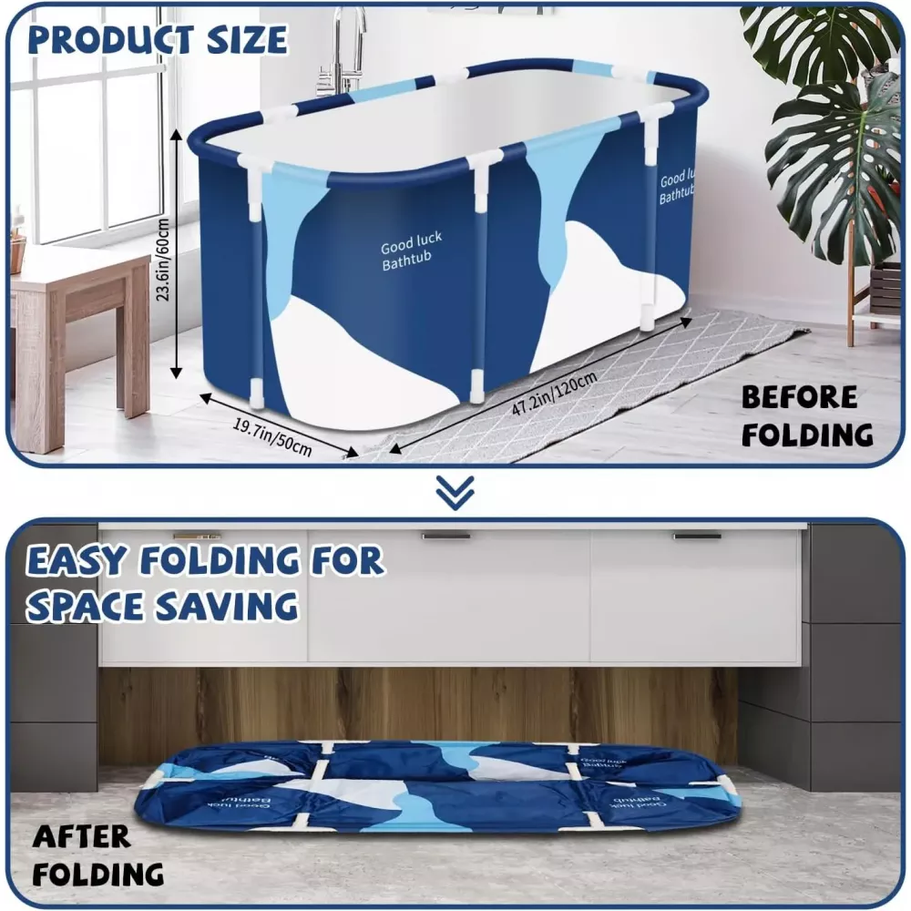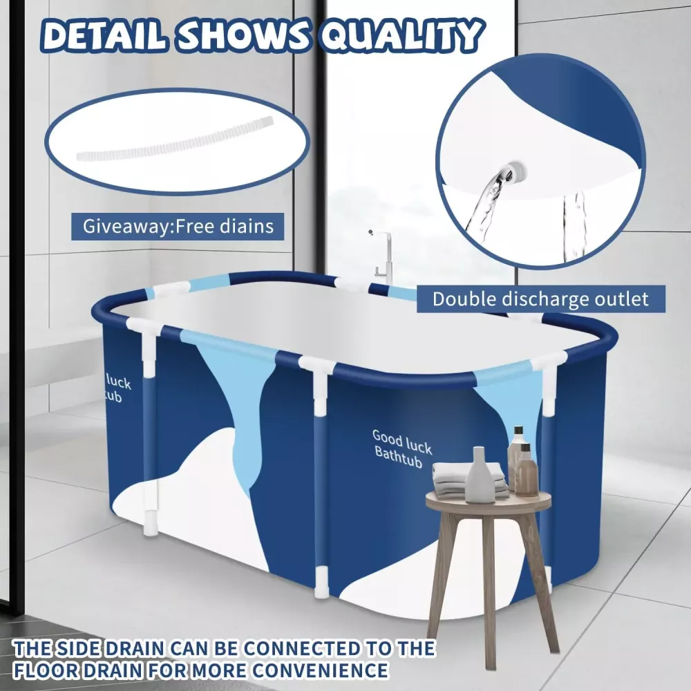 Ця портативна гідромасажна ванна для дорослих портативна і після купання не потрібно спускати повітря. Цю ванну можна скласти та зберігати у невеликому просторі. Теплий візерунок також візуально приємний. Відомо, що регулярні купання допомагають виводити токсини з організму, покращують стан шкіри та сприяють схуднення. Для тих, хто забув встановити традиційну ванну у своїй ванній, ця портативна ванна стане справжнім порятунком для любителів поніжитися у воді.