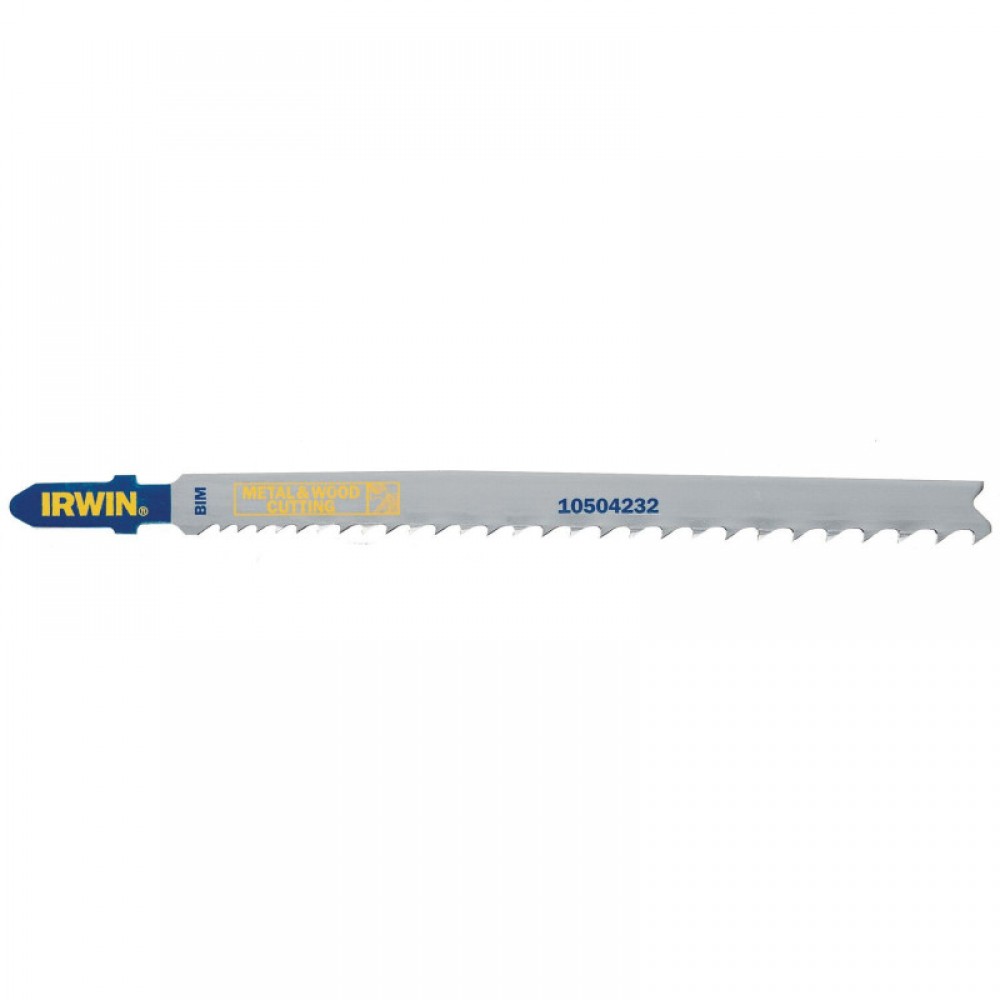 Пилка для лобзика бі-металева IRWIN BJSB, 5шт T345XF Пилка для лобзиків по металу та дереву IRWIN тип T345XF progressive Bi-Metal, 100 mm/4" 10504232 -5 шт Пилка біметалічна для електролобзика для роботи по металу та дереву Прогресивна форма зубів для різання як металевих заготовок, так і дерев'яних. Матеріал Bi-Metal - це дуже гнучкий та міцний матеріал для широкого застосування. Має Т-подібний хвостовик Упаковка: 5 шт