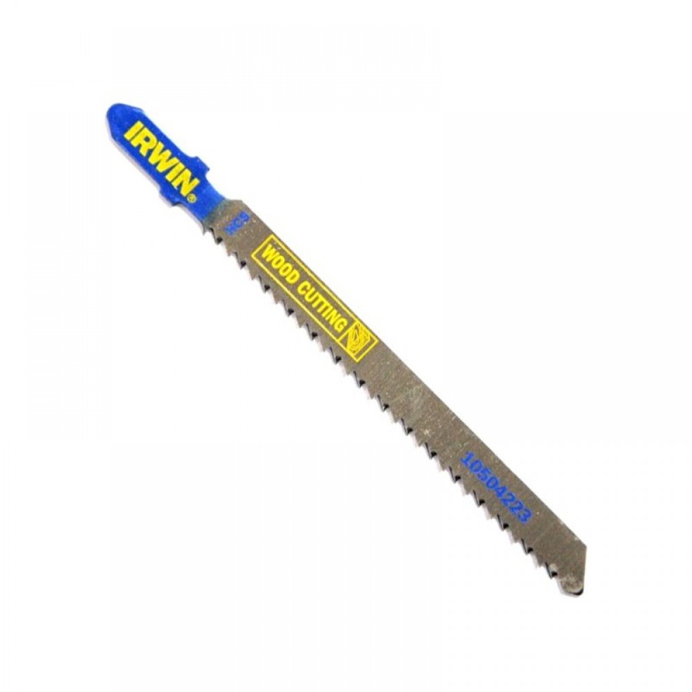 Пилка для лобзика по дереву IRWIN BJSB, 5шт T101BR Пилка для електролобзика Т101В виготовлена з високовуглецевої сталі HCS. Хвостовик. Призначена для швидкого прямолінійного розпилювання твердих та м'яких сортів дерева, пластику, ДСП товщиною від 6 до 60 мм. Пилка по дереву для електролобзика Т-хвостовик 5 шт (100/10/Т101BR) Пилка для електролобзика для роботи по дереву Матеріал HCS - вуглецева сталь для роботи з м'якими матеріалами: дерево, ламінат, пластик 3 різних кута заточування зубів пилки для чистої та швидкої роботи Т-подібний хвостовик Упаковка: 5 шт