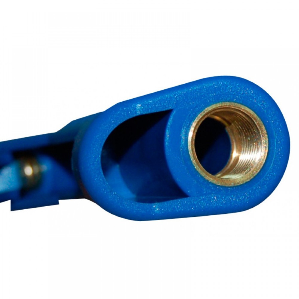 Пістолет обдування L=245 мм – пневматичний інструмент для очищення поверхонь. Використовується в автосервісі для усунення бруду з вузлів та механізмів автомобіля, елементів кріплення та деталей, для очищення робочого місця слюсаря або верстата. Виробник: King Tony Країна виробник: Тайвань Матеріал: сталь Оздоблення: хромування Рукоятка: нейлон Звуковий тиск: 85-90 дБ Максимальний тиск: 15 кг/220 PSI Рекомендований тиск: 90 PSI Витрата повітря: для шланга 1/4" - 350 л/хв, для шланга 3/8" - 430 л/хв Розмір: загальна довжина 245 мм, довжина сопла 100 мм Вага: 200 грам Кількість продувних пістолетів в упаковці – 20, у ящику – 100 штук.