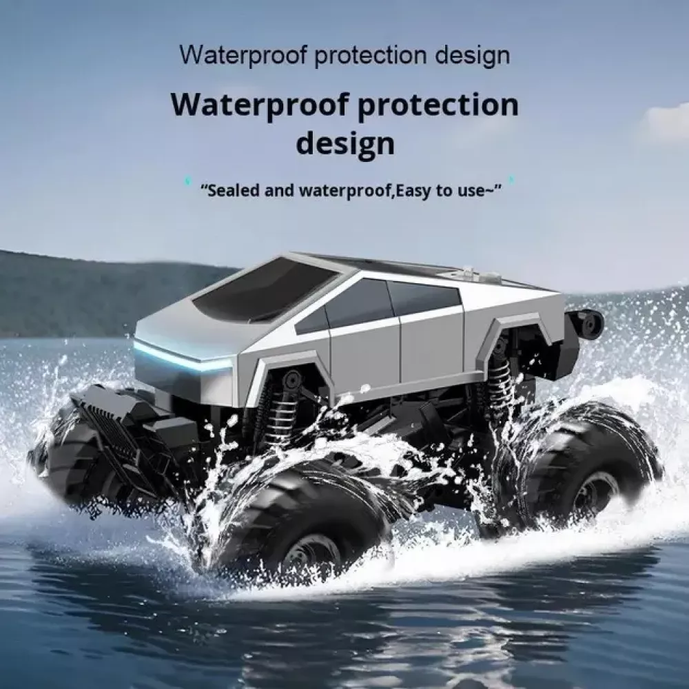 Поринь у світ гонки із сучасним позашляховиком на великих колесах, створеним у стилі Tesla Cybertruck! Радіокерована машинка Trevor Tesla Cybertruck CV-B907 вражає реалістичним дизайном, потужними функціями та чудовою маневровістю. Вона здатна їздити суходолом, ставати на задні колеса, обертатися на 360° і навіть не боїться вологи!