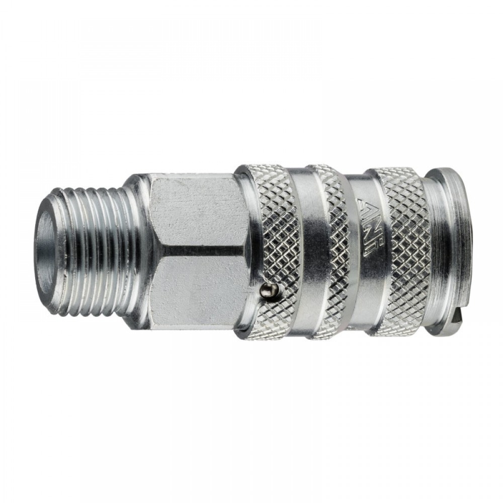 Швидкознімна муфта із зовнішнім розташуванням різьблення 1/2 (гігант) Роз'єм б/с 90/R-1 1/2M Гігант – це швидкознімна муфта із зовнішнім розташуванням різьблення. Пристрій призначений для швидкого з'єднання та роз'єднання двох вузлів однієї системи. Швидкознімний роз'єм King Tony призначений для організації щільного та надійного з'єднання у трубопровідних системах. Зокрема для роботи пневматичного обладнання на станціях ТО, на виробничих підприємствах, у будівництві. Гніздо підійде для роботи гідравлічних систем. Муфта та ніпель – мама та тато. Так прийнято в автосервісі розрізняти рознімання швидкознімних між собою. На етапі вибору покупець вирішує, якому типу пристосування віддати перевагу. Роз'єм підбирається під посадковий діаметр вхідного штуцера. Металевий корпус, затискач для фіксації, зворотний клапан, ущільнювач та адаптер – перелік компонентів, з яких складається муфта у зборі. Надійність і довговічність – лише два критерії, якими цікавляться покупці. Роз'єм б/с 90/R-1 1/2M Гігант відповідає європейським вимогам, що стосуються роботи пневматичного обладнання та ручного інструменту. Продукція супроводжується сертифікатом якості та офіційною довічною гарантією продавця.